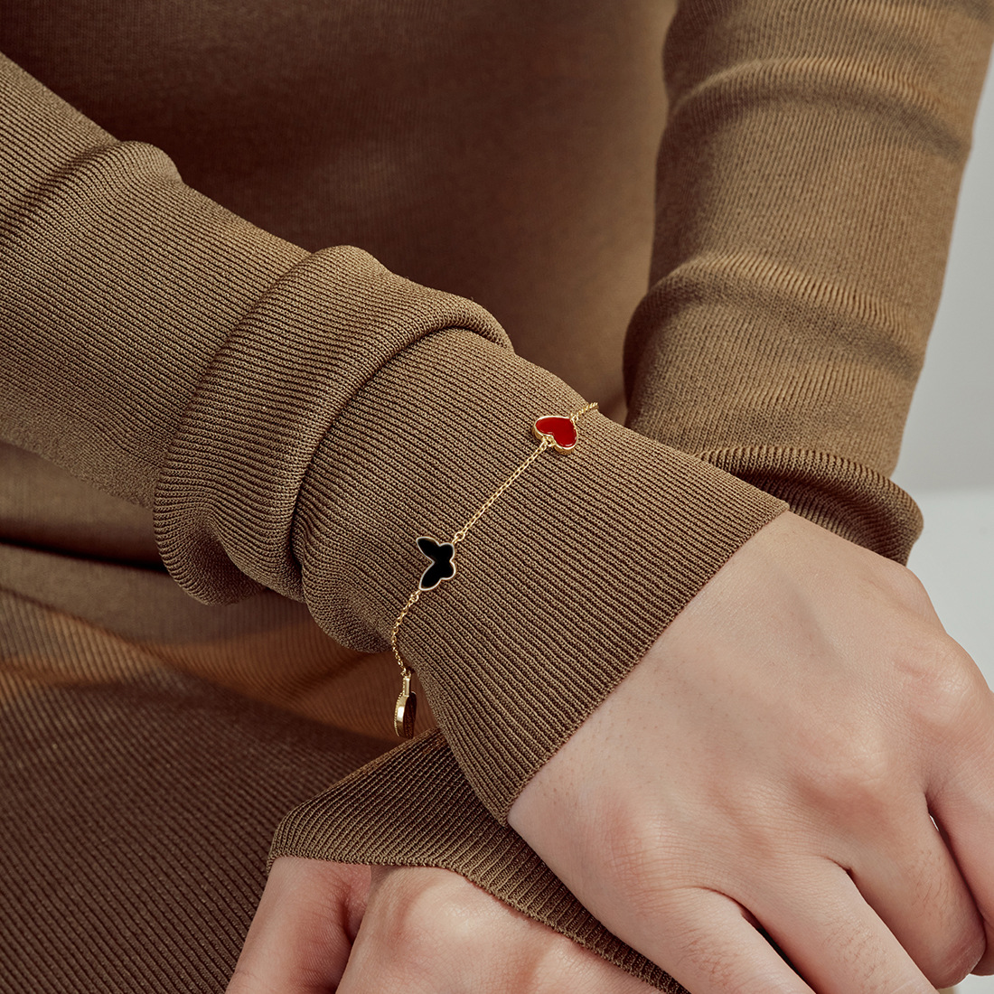 popular butterfly love clover mixed titanium steel bracelet women's fashion new four-color light luxury lucky bracelet 中文版