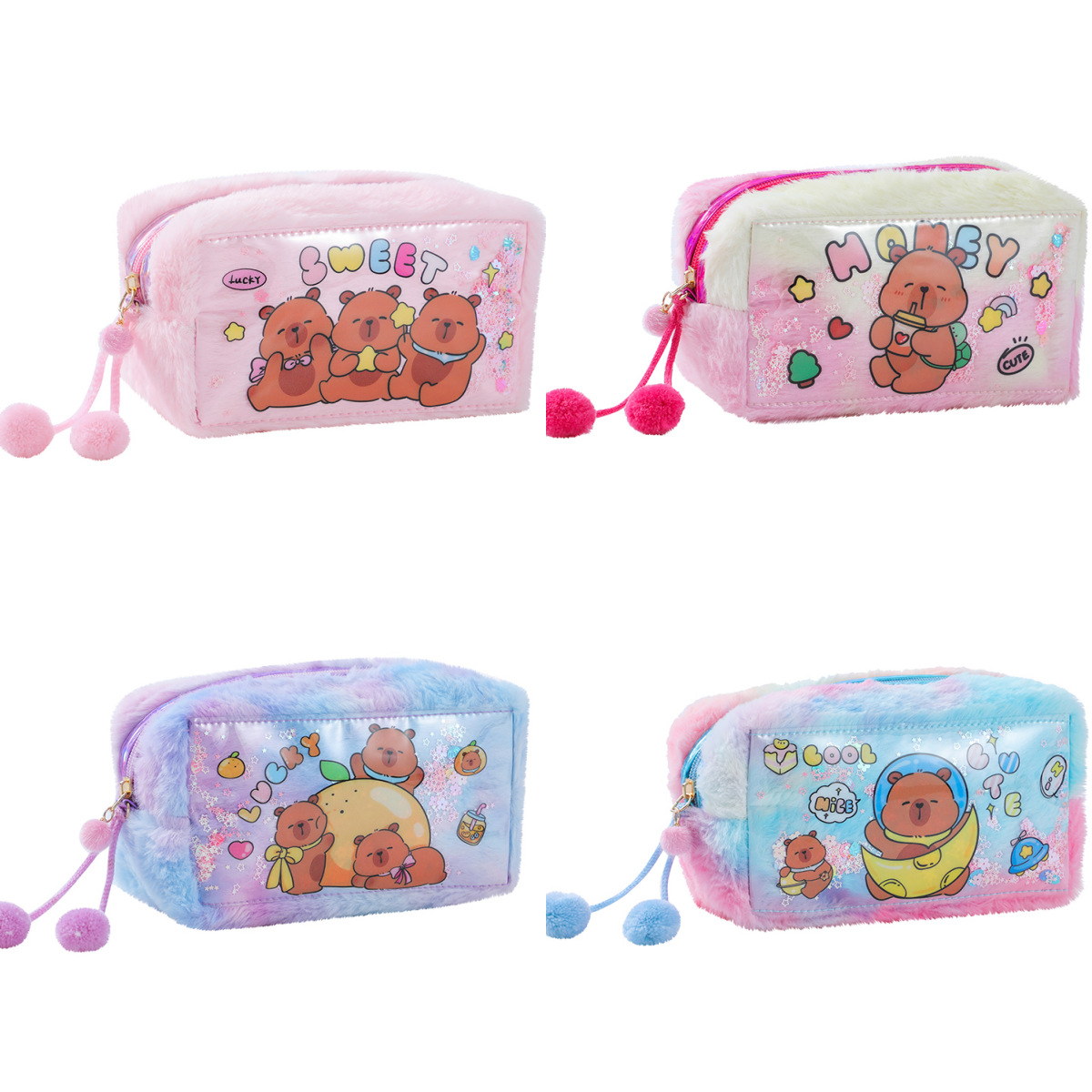 capabala pompom pen bags cute student stationery storage bag large capacity diy material desktop storage bag