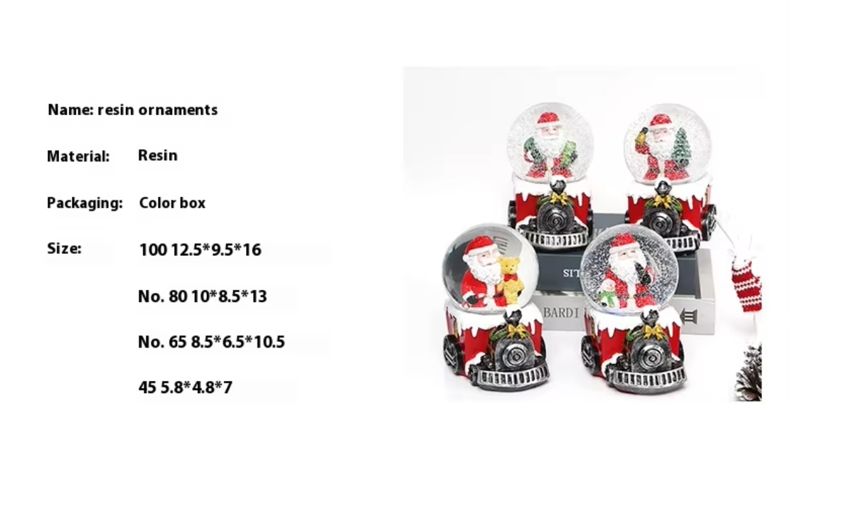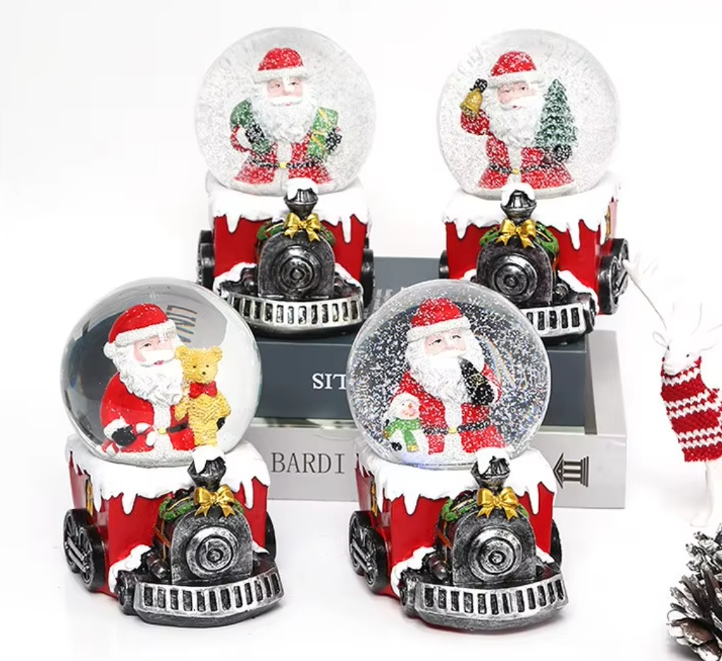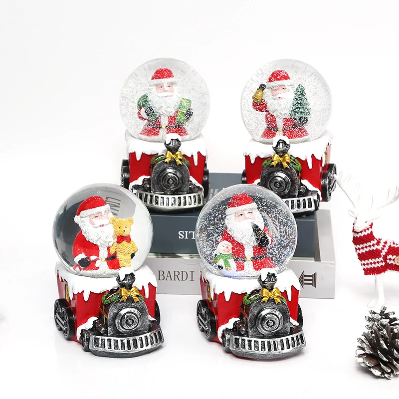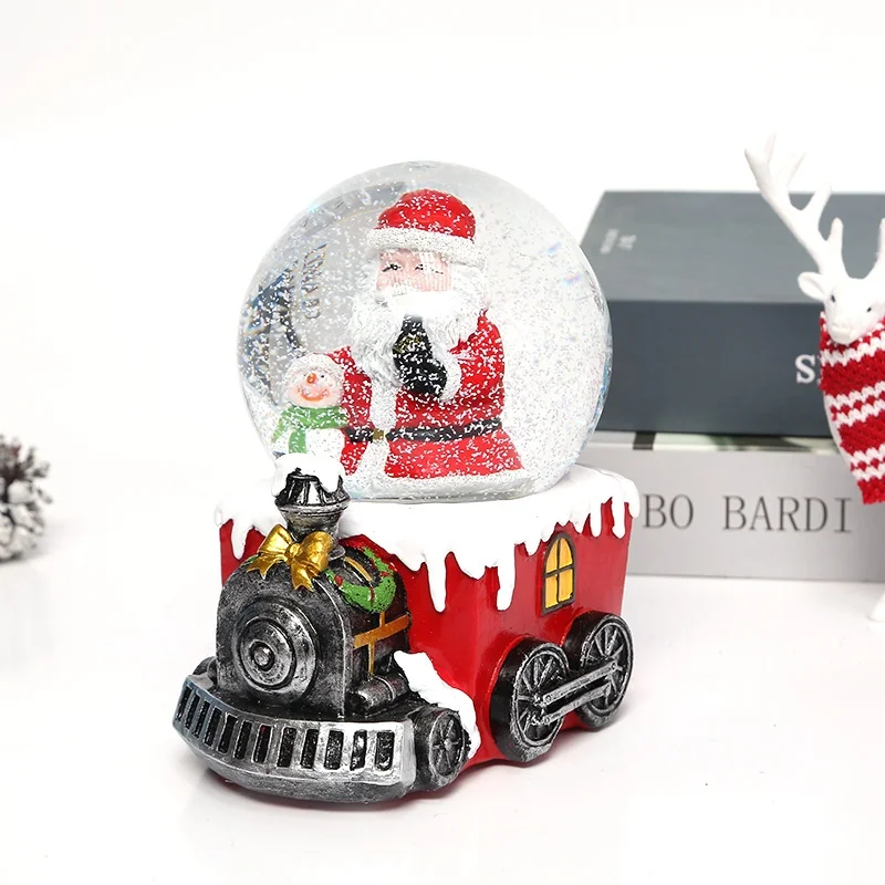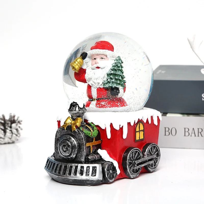 Christmas Snow Globe Transparent Crystal Ball Christmas Decoration with Light Music Box & Automatic Snowfall Resin Ornament