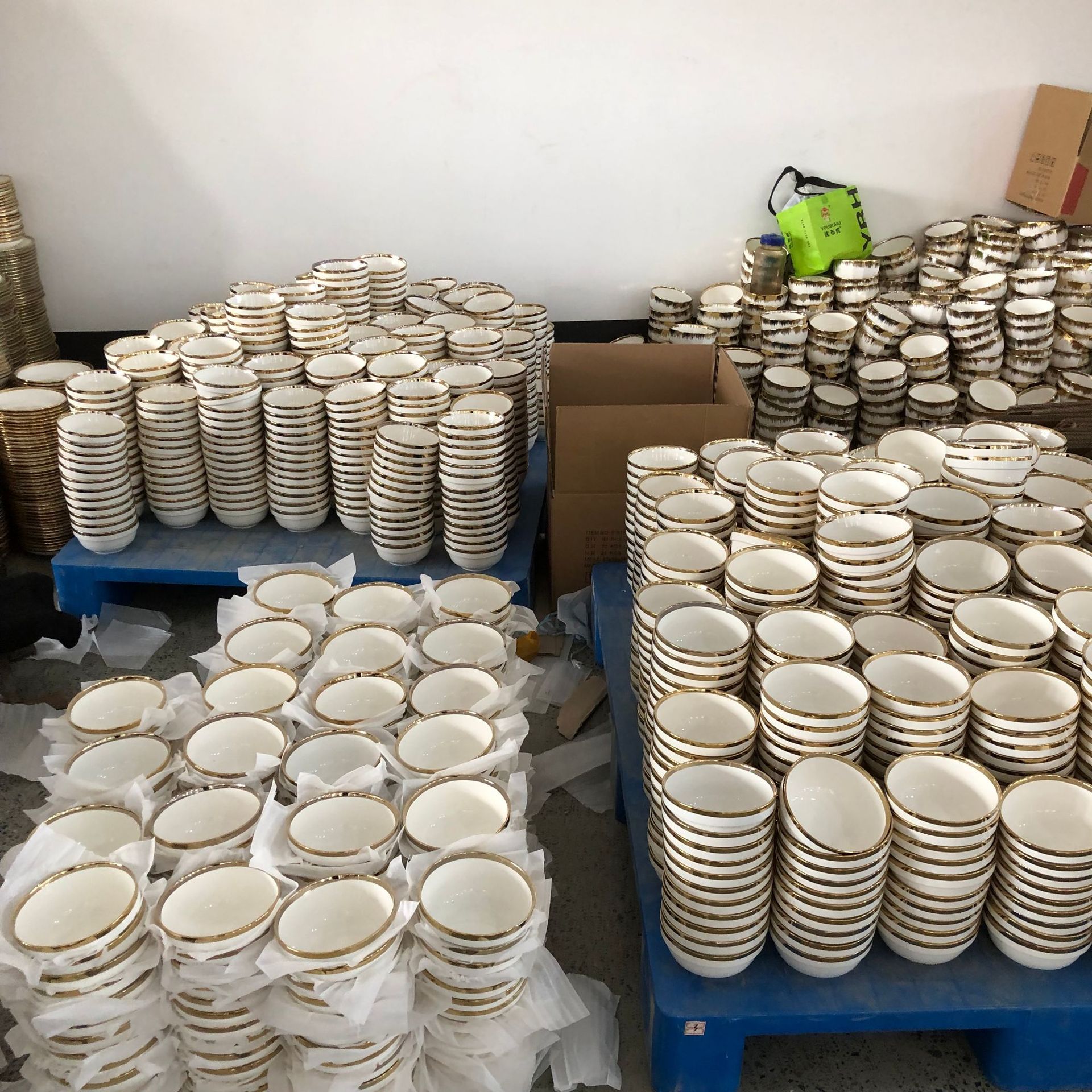 We are the factory in Linyi city, Shandong province. Focus on golden edge dinnerware. Please order by the number of boxes or multiples (sold by the box, not opened). The details of express delivery and logistics fees, please consult the customer service.