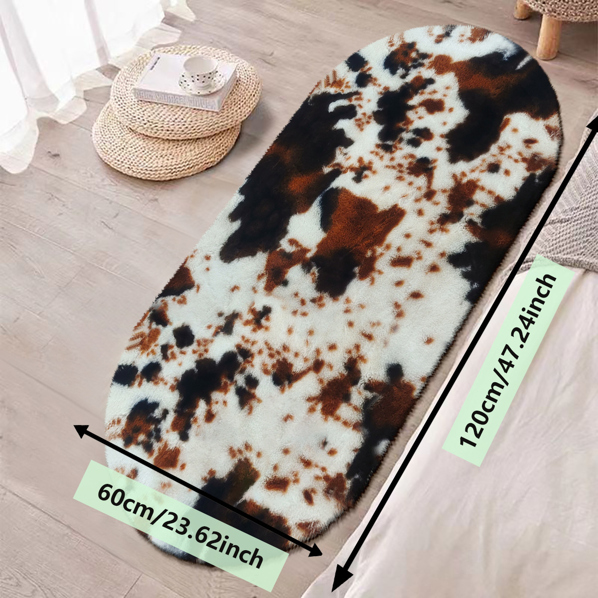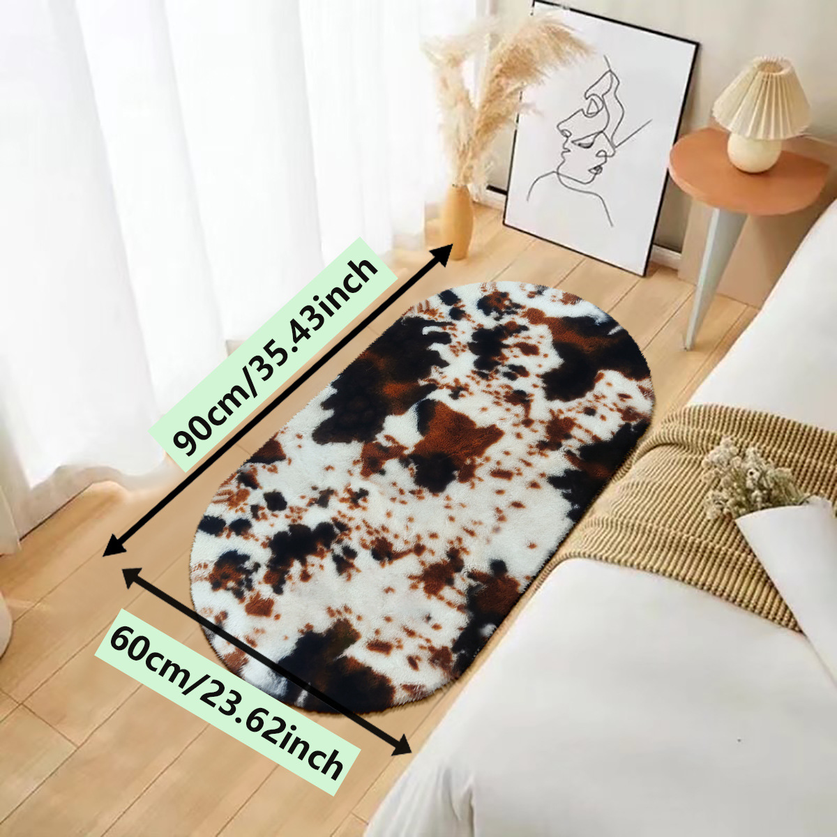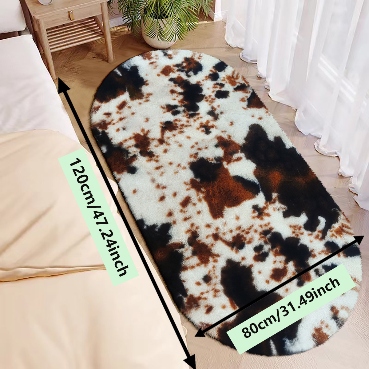 in stock imitation rabbit fur oval cows pattern carpet non-slip mat foot mats pet pad 中文版