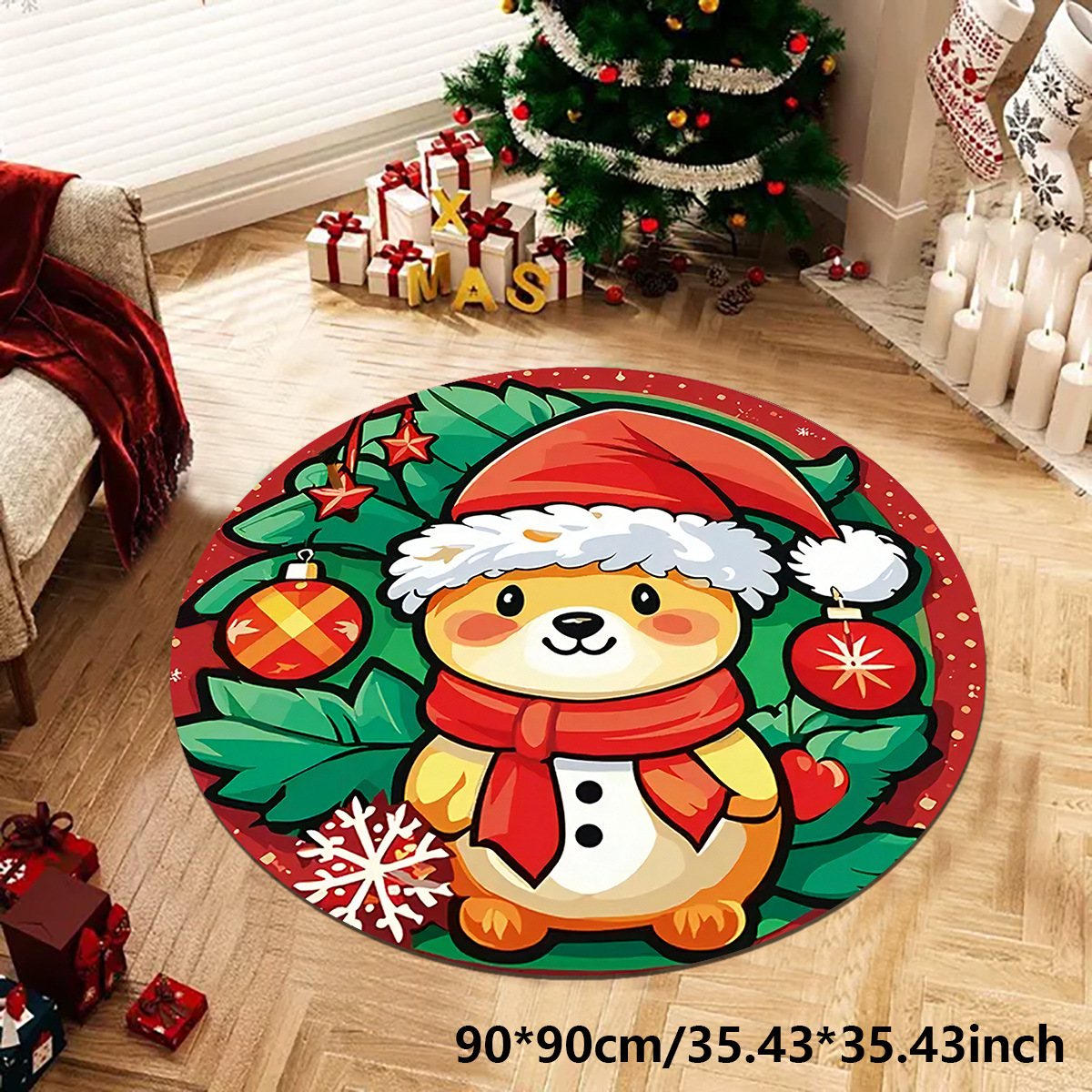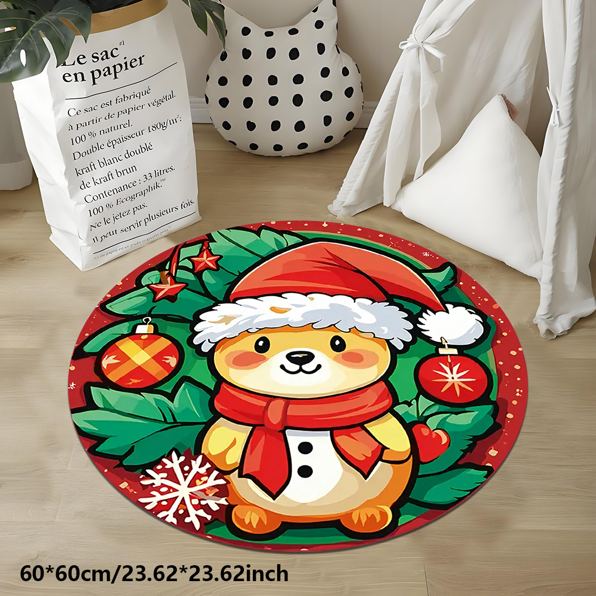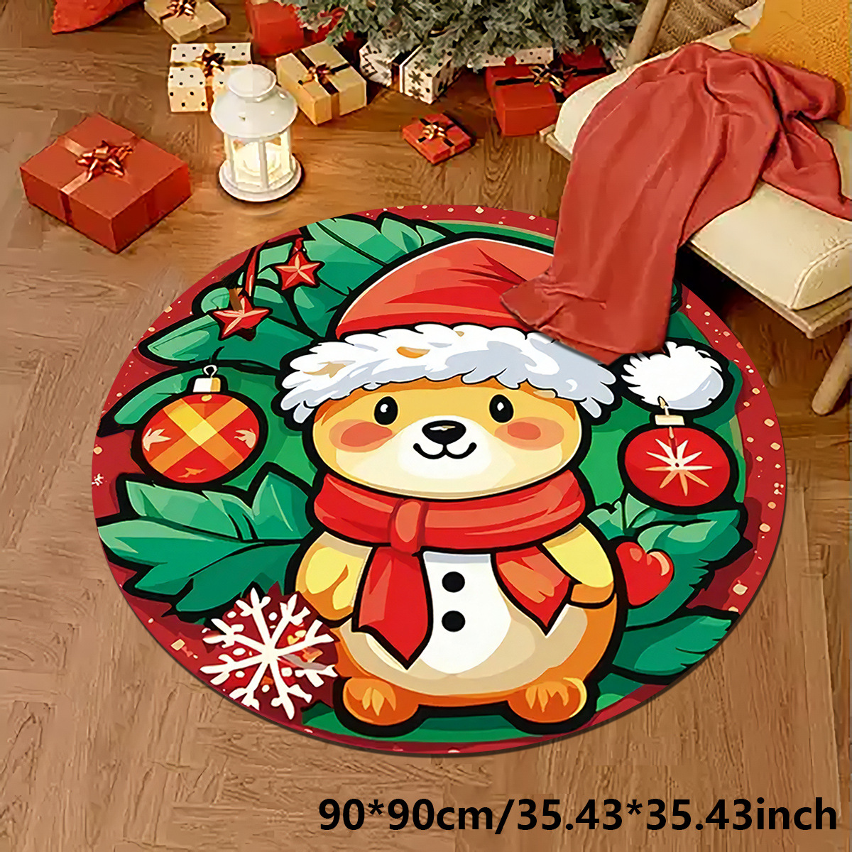 christmas puppy round crystal velvet floor mat non-slip mat bedroom mat foot pad 中文版
