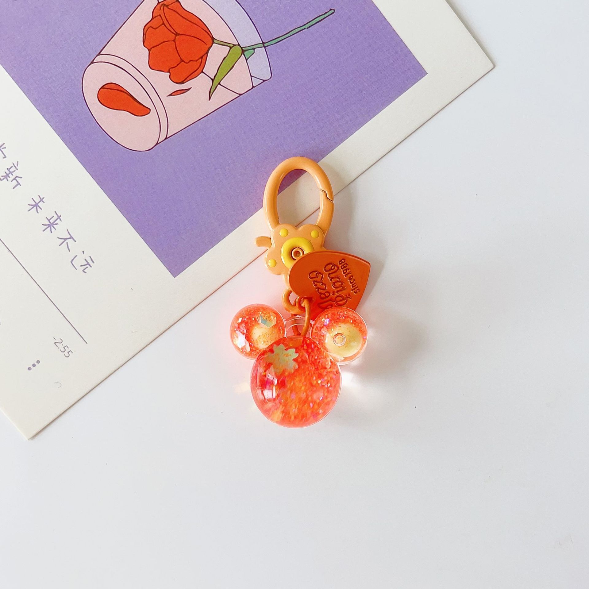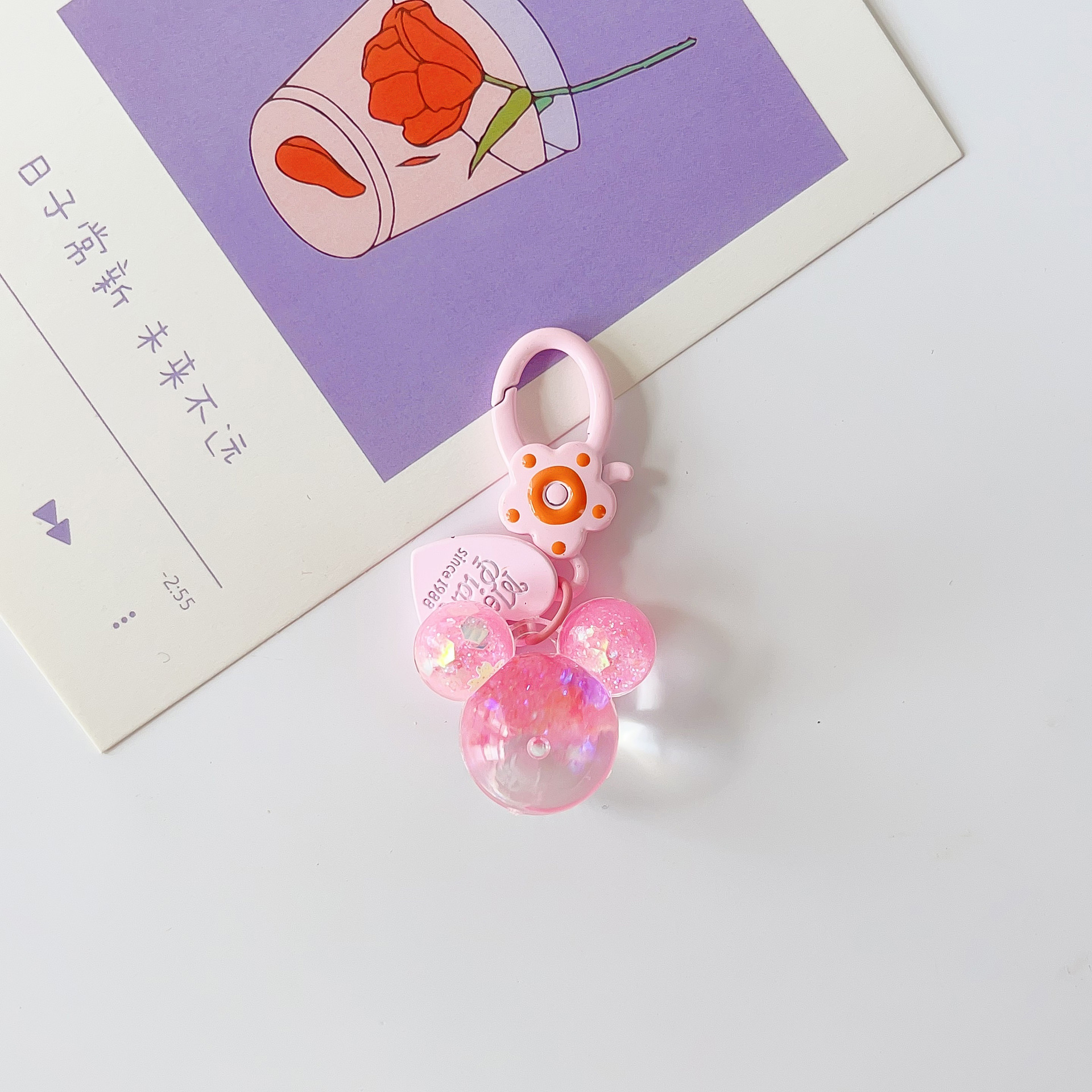 mickey headwear mini keychain-rose red