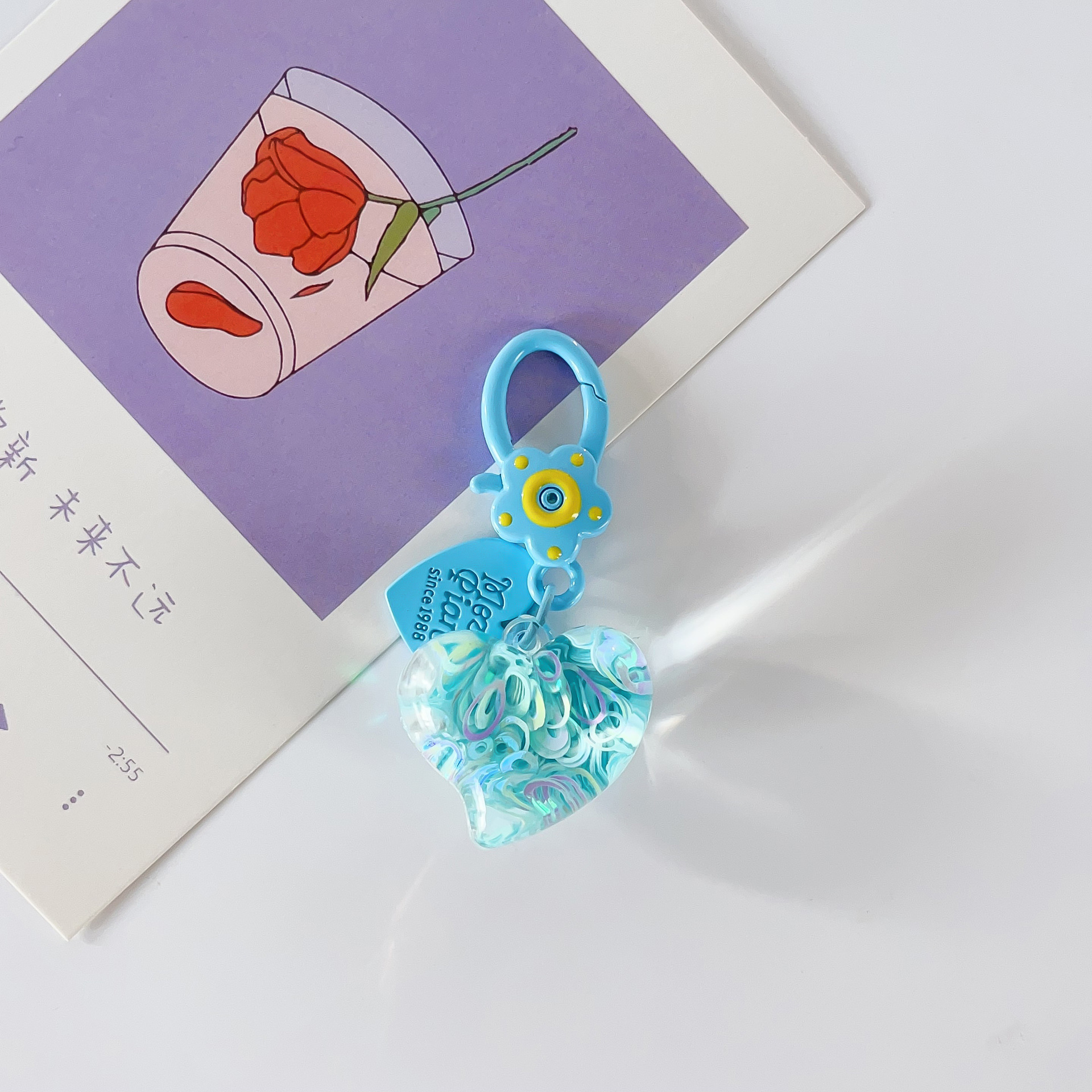 flower mini keychain-blue