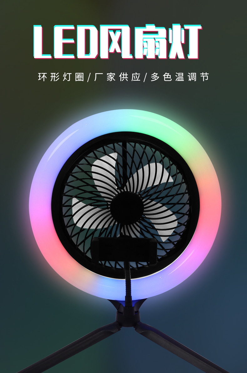 foreign trade dedicated to fill light colorful live broadcast fan lamp desktop floor fan lamp soft light tripod fan lamp 中文版
