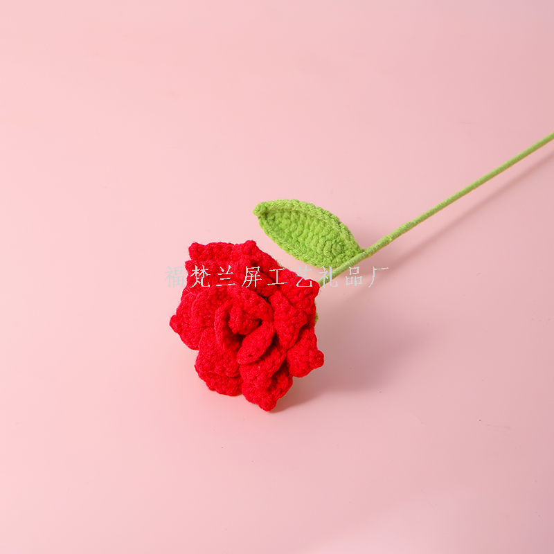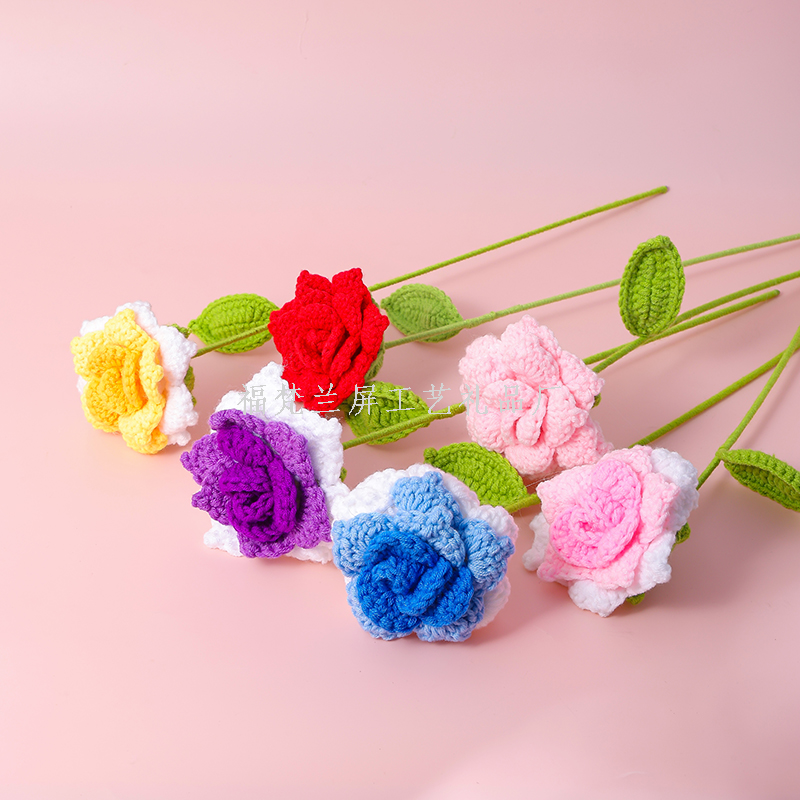 big rose flower branch handmade crocheted wool flowers finished product creative bouquet material mother's day valentine's day gift 中文版