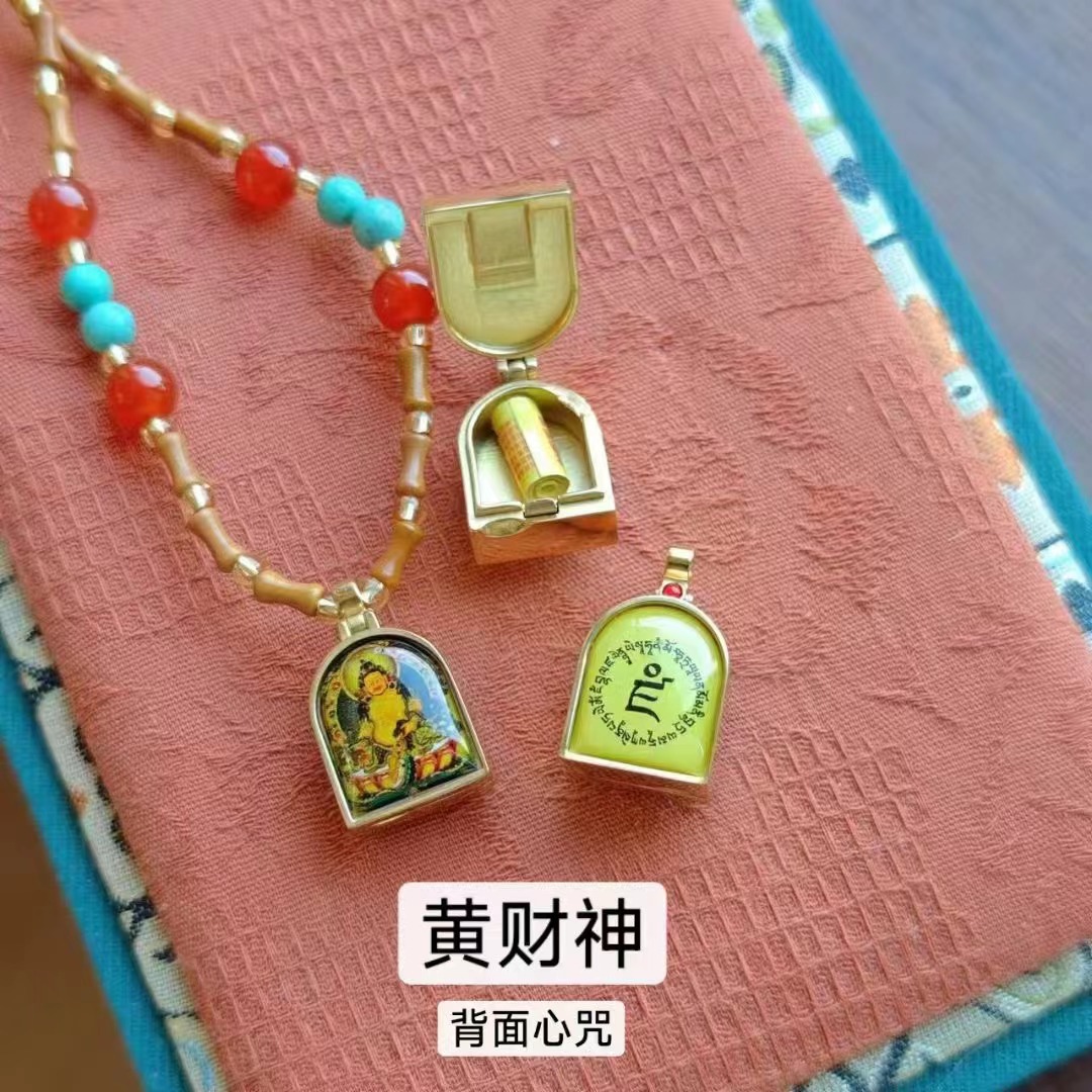 | Material | Olive kernel, red agate, imitation green pine accessories, copper-gilded Tibetan thangka (print)