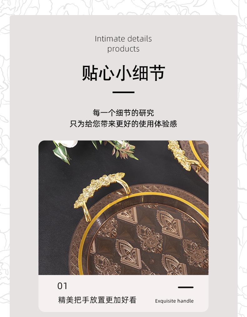 | rose handle transparent bronzing amber round tray | ¥6.9 | 100000 piece available |