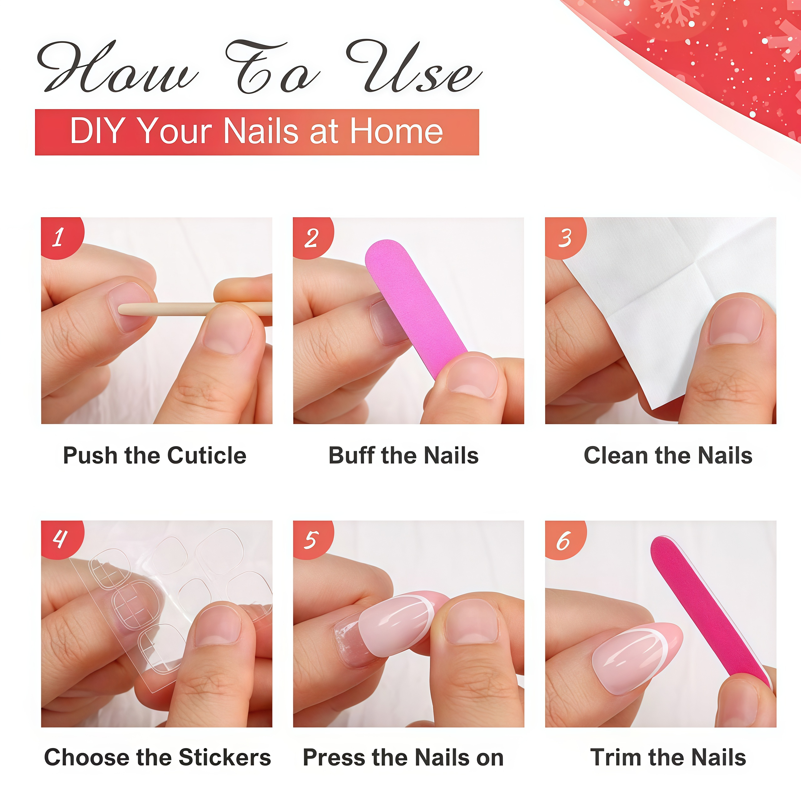 【Easy to Use】Without spending a lot of time and money at a nail salon, you can change your nail style anytime and anywhere in just 15 minutes. (Before use, clean the nails, and avoid getting them wet within the first hour after wearing them to keep the fake nails looking good for a longer time).