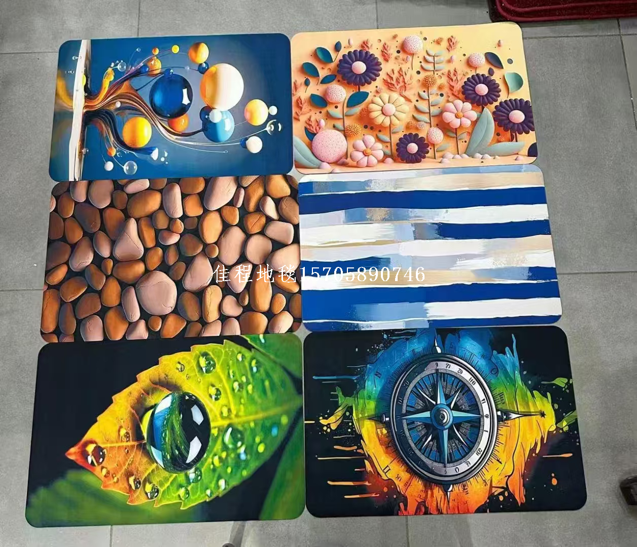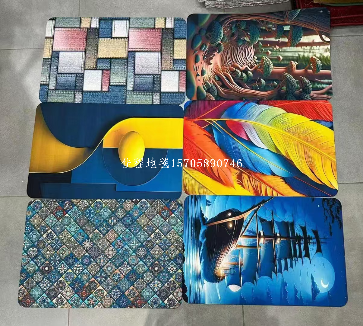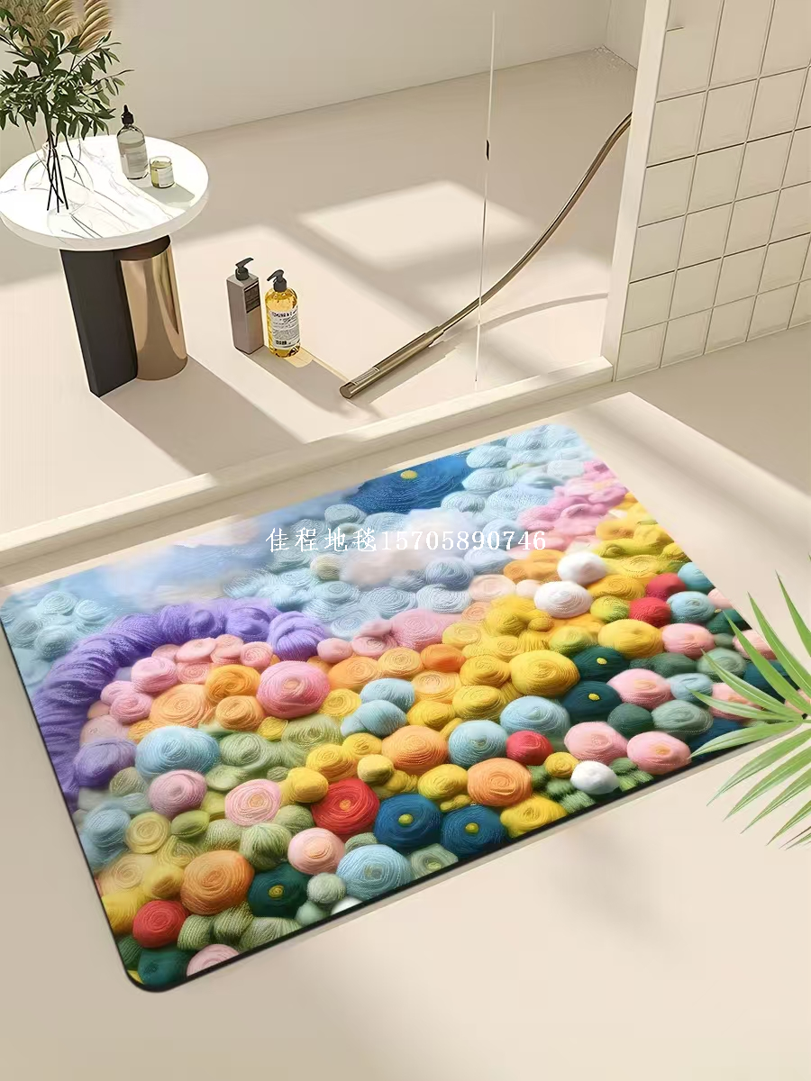 2mm Thickness New Model Quickly Absorbing Anti-skid Door Mat with 3D Printing Floor Mat Dry Foot Mat Carpet Kitchen Mat Soft Diatomite Mat Quality of the product is good, with many patterns, clear and beautiful. The bottom is made of rubber material, the product size is 38*58cm, and it is packaged in 100 pieces per package with a woven bag.