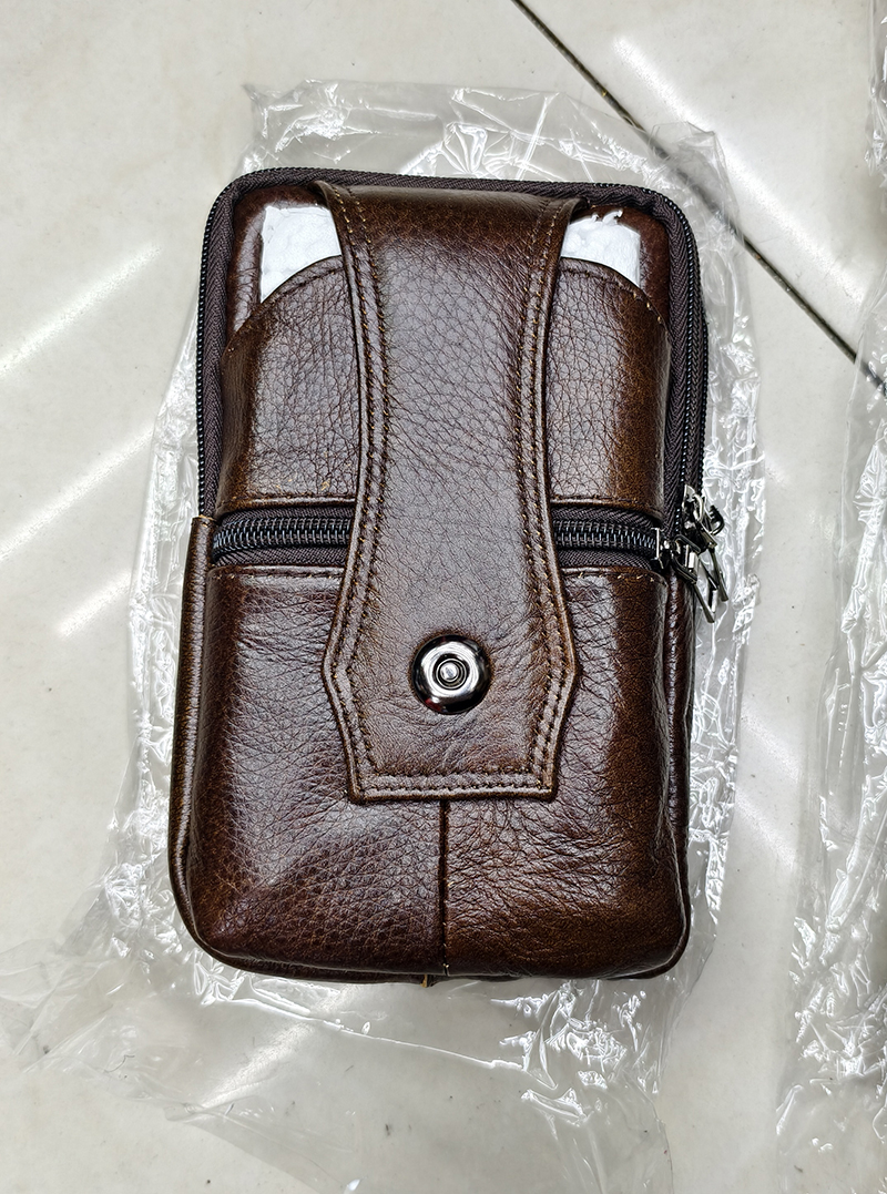 This product is made from high-quality shredded cow leather, practical and wear-resistant. It is 20CM high, 13CM wide, and 4CM thick, which can meet the needs of the majority of mobile phones on the market. The small bag is equipped with detachable shoulder straps, which can be directly worn through the belt on the waist, or the shoulder strap can be used as a sling bag for shopping and outdoor activities. The disadvantage of this product is that the cow leather is not from the same piece, so there will be slight color differences. Friends who mind should not buy. The factory also produces more styles of mobile phone bags, wholesale customers can contact us via WeChat at 18358900388 for consultation and negotiation.