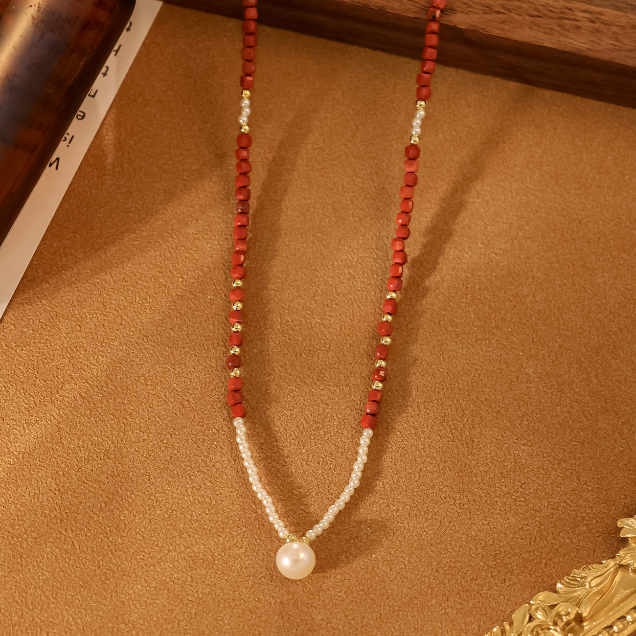 1# freshwater pearl red necklace