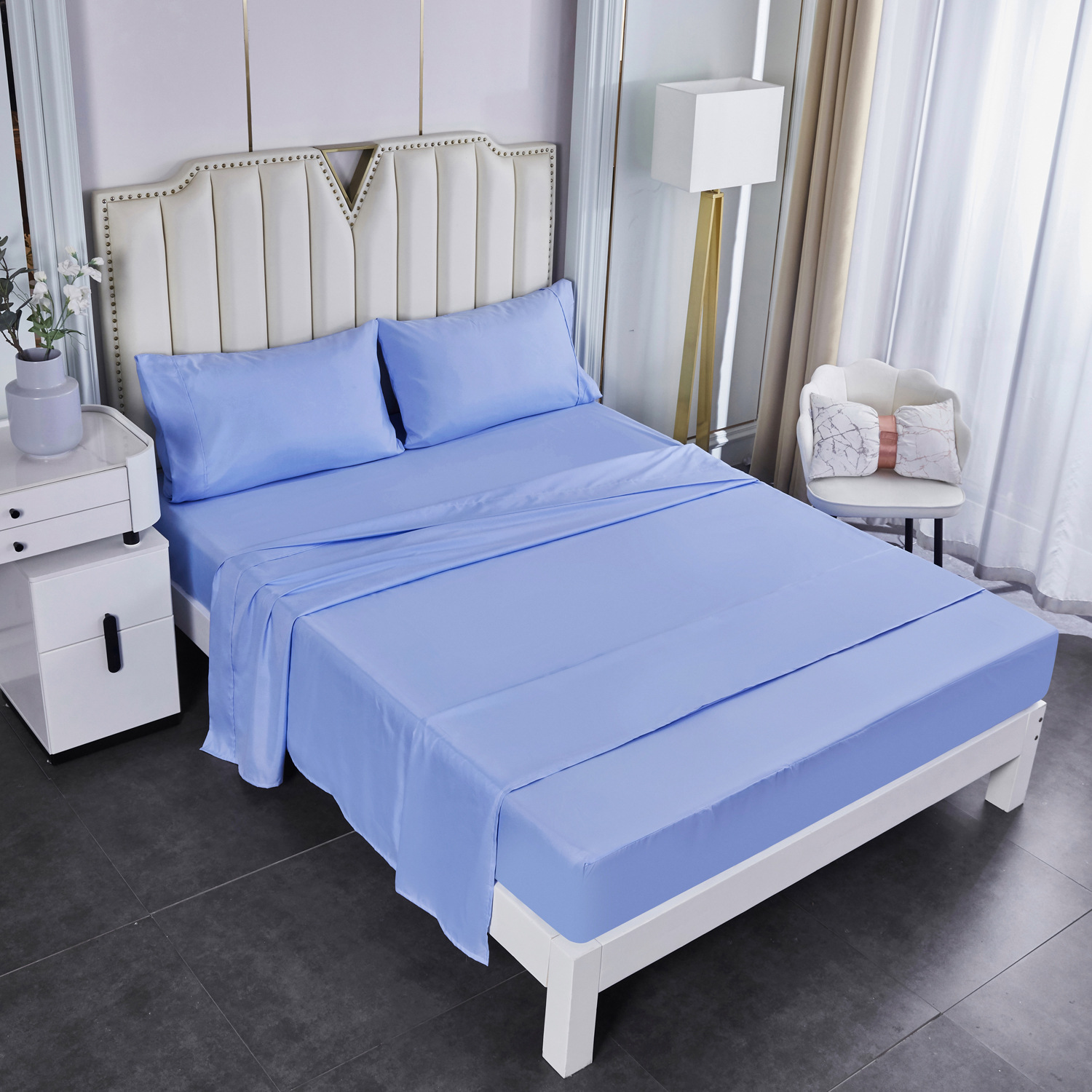 cross-border amazon plain brushed cloth insertion strip foreign trade bed sheet four-piece bedding bed sheet bed sheet bed sheet set 中文版