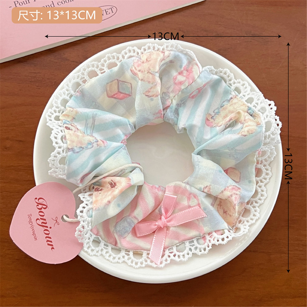 7# blue lace cute rabbit large intestine hair ring
