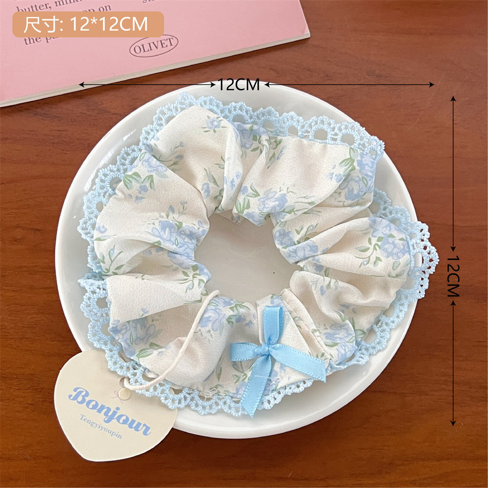 16# blue printed lace edge square scarf hair ring