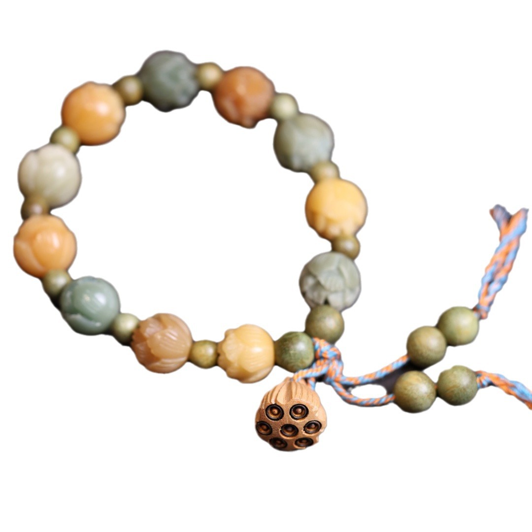 | Material | Candy color lotus Buddha, green sandalwood, jujube wood lotus pod