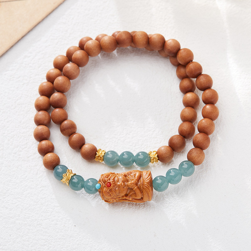 |Material|6MM Blue Jadeite, 925 Silver-plated Gold Accessories, Barbary Sandalwood