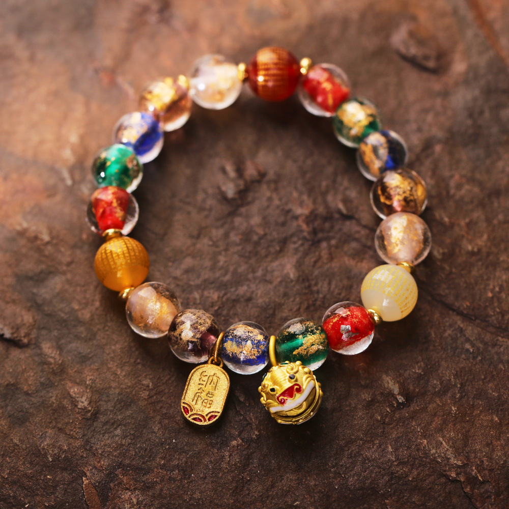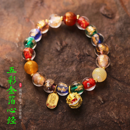 colorful gold foil glaze heart sutra turbot fish bracelet