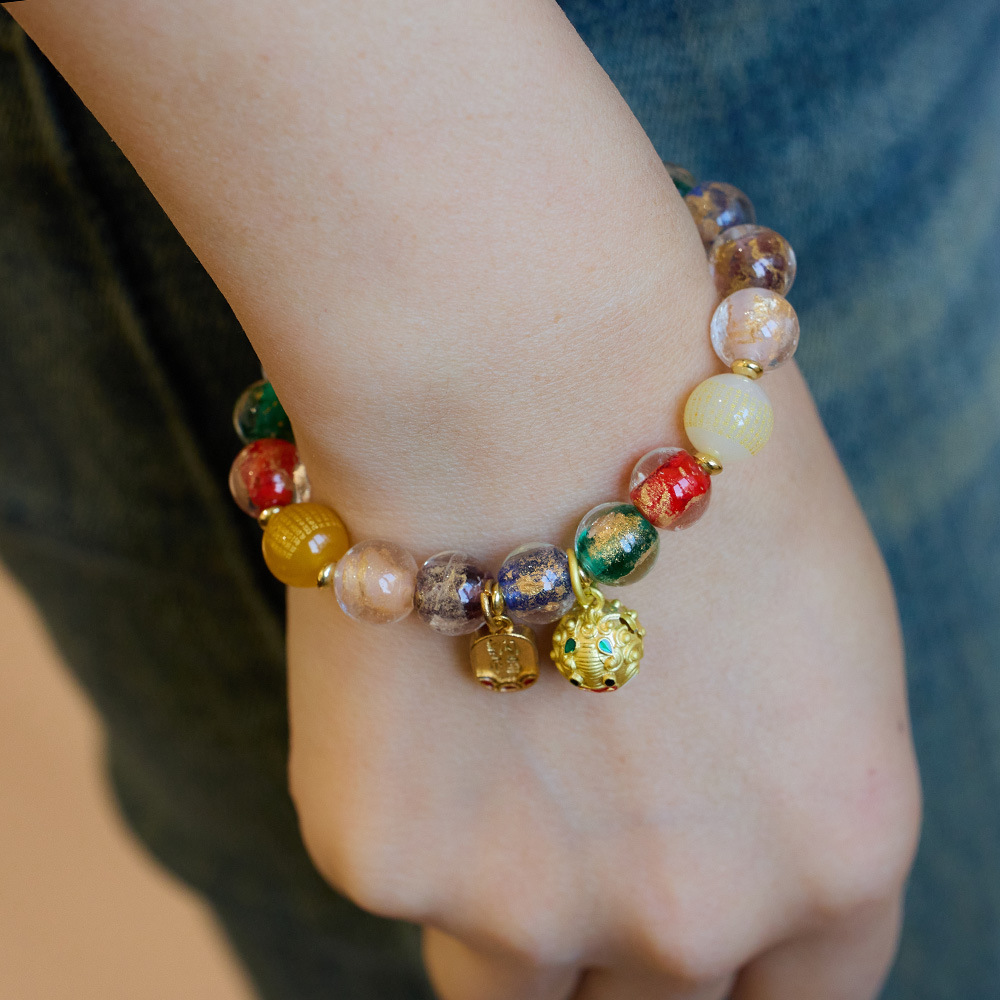 | Size | 10MM agate round beads, 10MM multi-colored gold leaf glass, 10MM poly treasure fish bells, suitable for wrist circumference 14-16cm