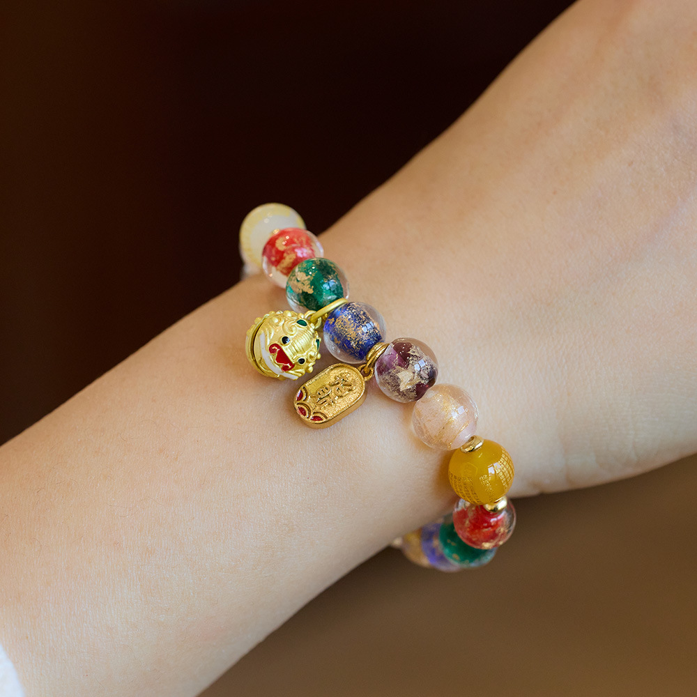 | Material | Red Agate Heart Sutra, White Agate Heart Sutra, Yellow Agate Heart Sutra, Multicolor Glass, Copper-Gilded Accessories