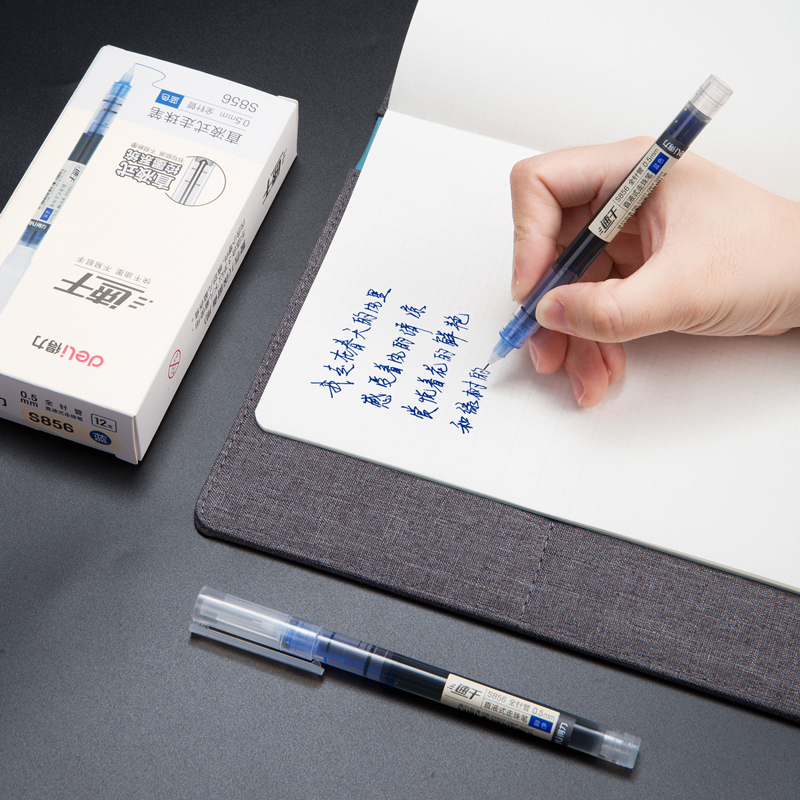 deli blue 0.5mm exam smooth not smudge student office supplies straight liquid gel pen 中文版