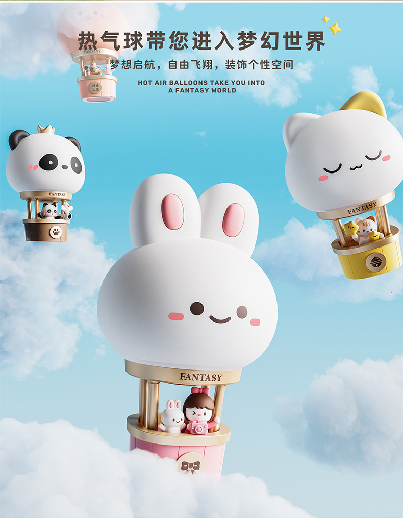 Hot Air Balloon Night Light SKU: Kitten, Rabbit, Panda, Persimmon