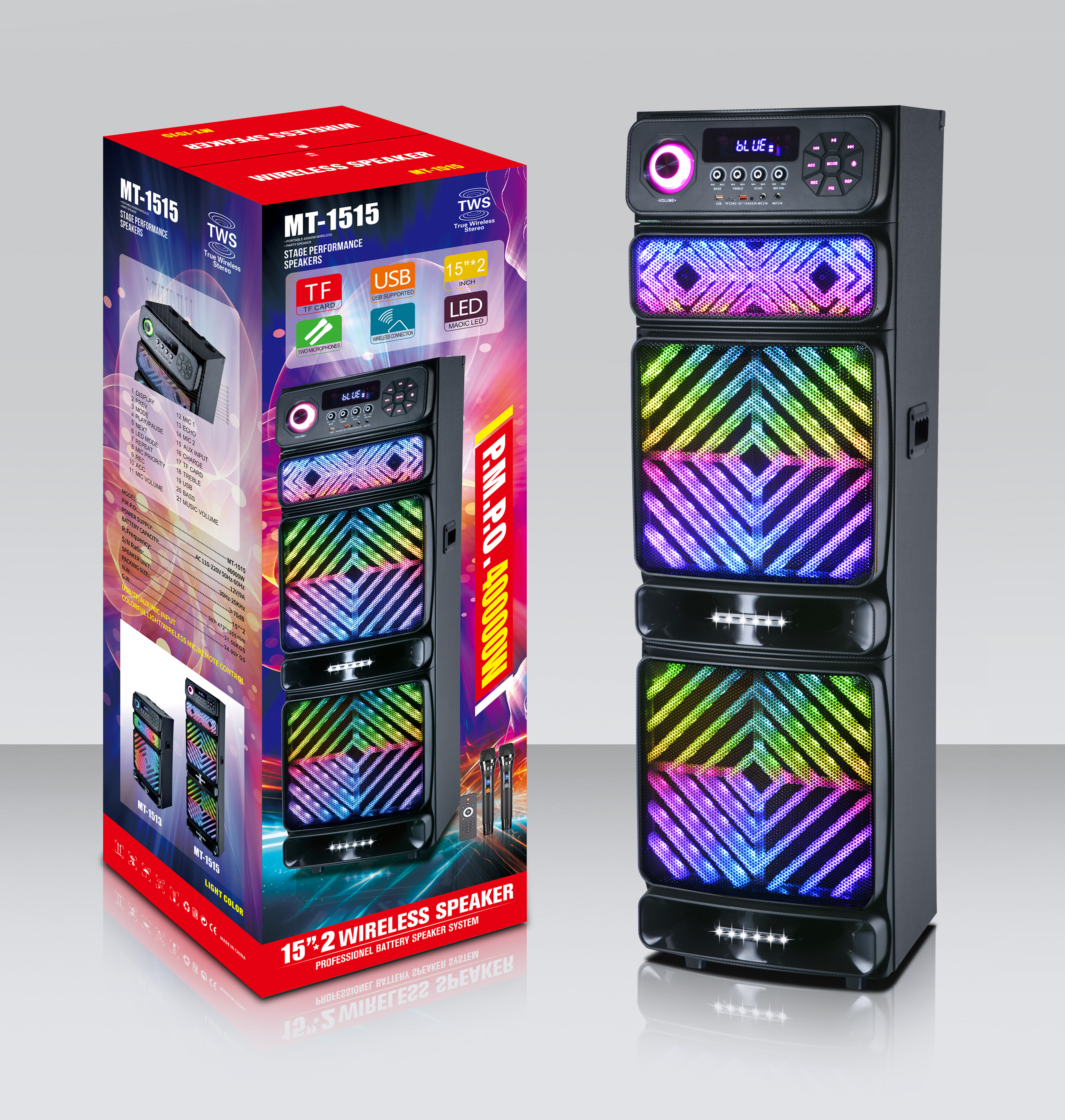 15 'wireless bluetooth speaker outdoor extra bass audio 中文版