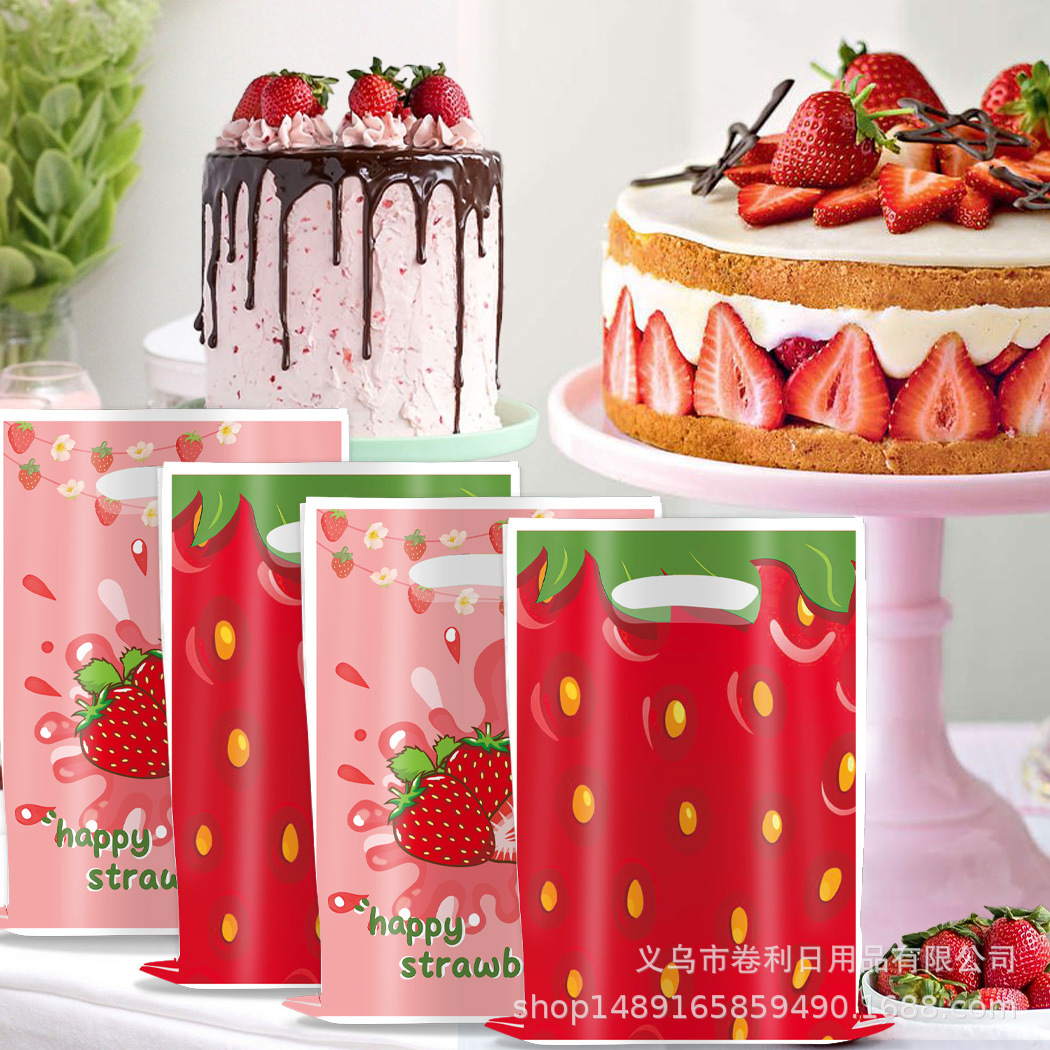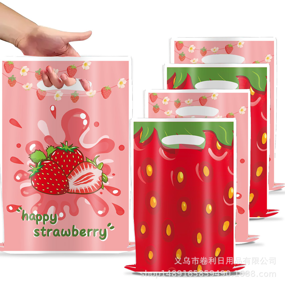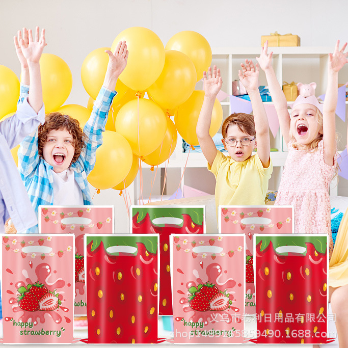 new strawberry theme party supplies strawberry gift bag candy bag gift bag party decoration strawberry handbag 中文版