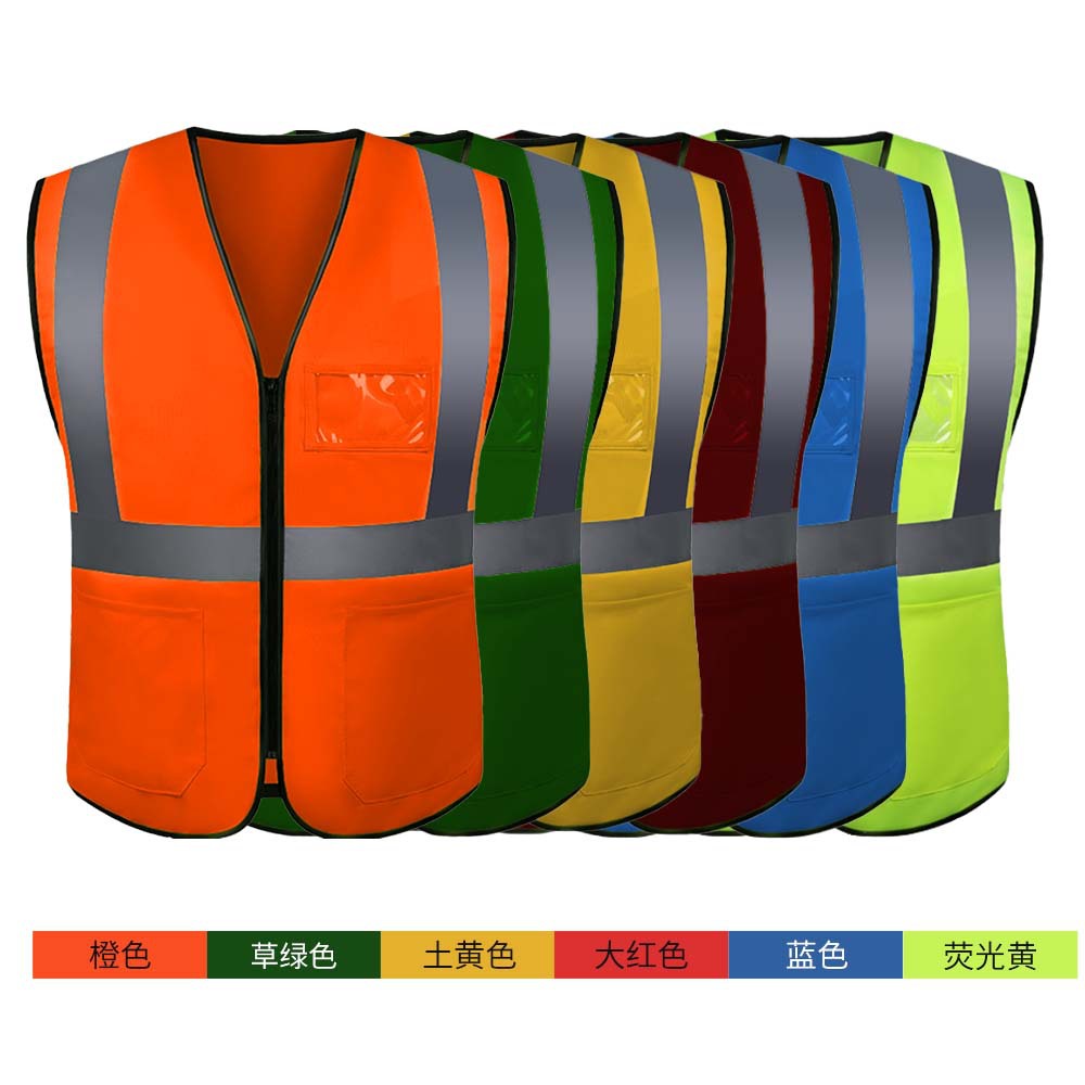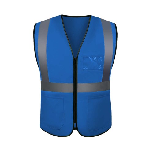 new v-neck zipper reflective vest blue fast dry fabric multi-pocket business card bag source factory reflective vest