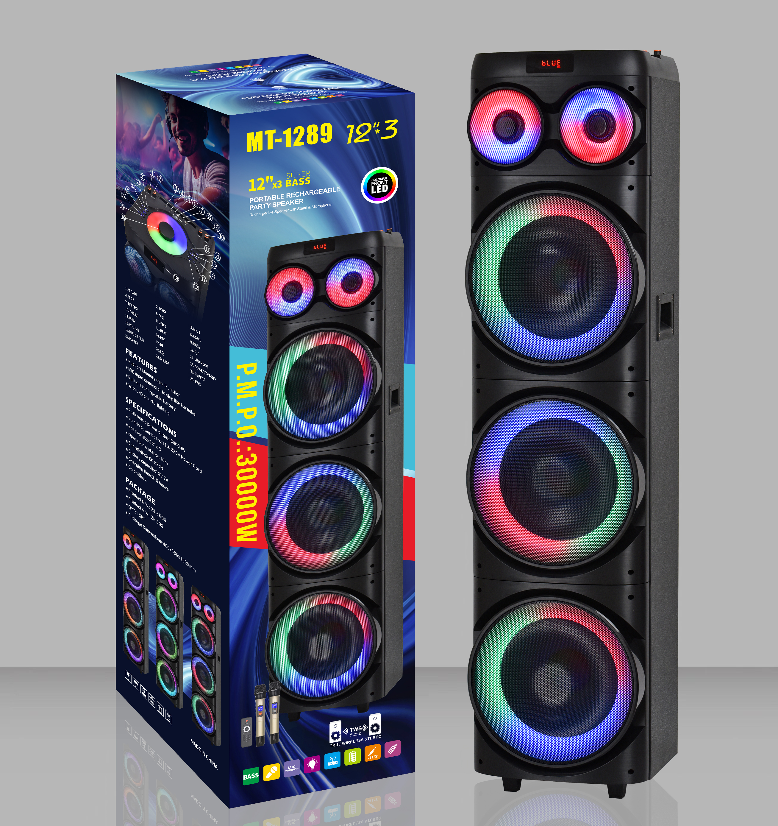 portable multi-function high volume reverb subwoofer audio square dance speaker 中文版