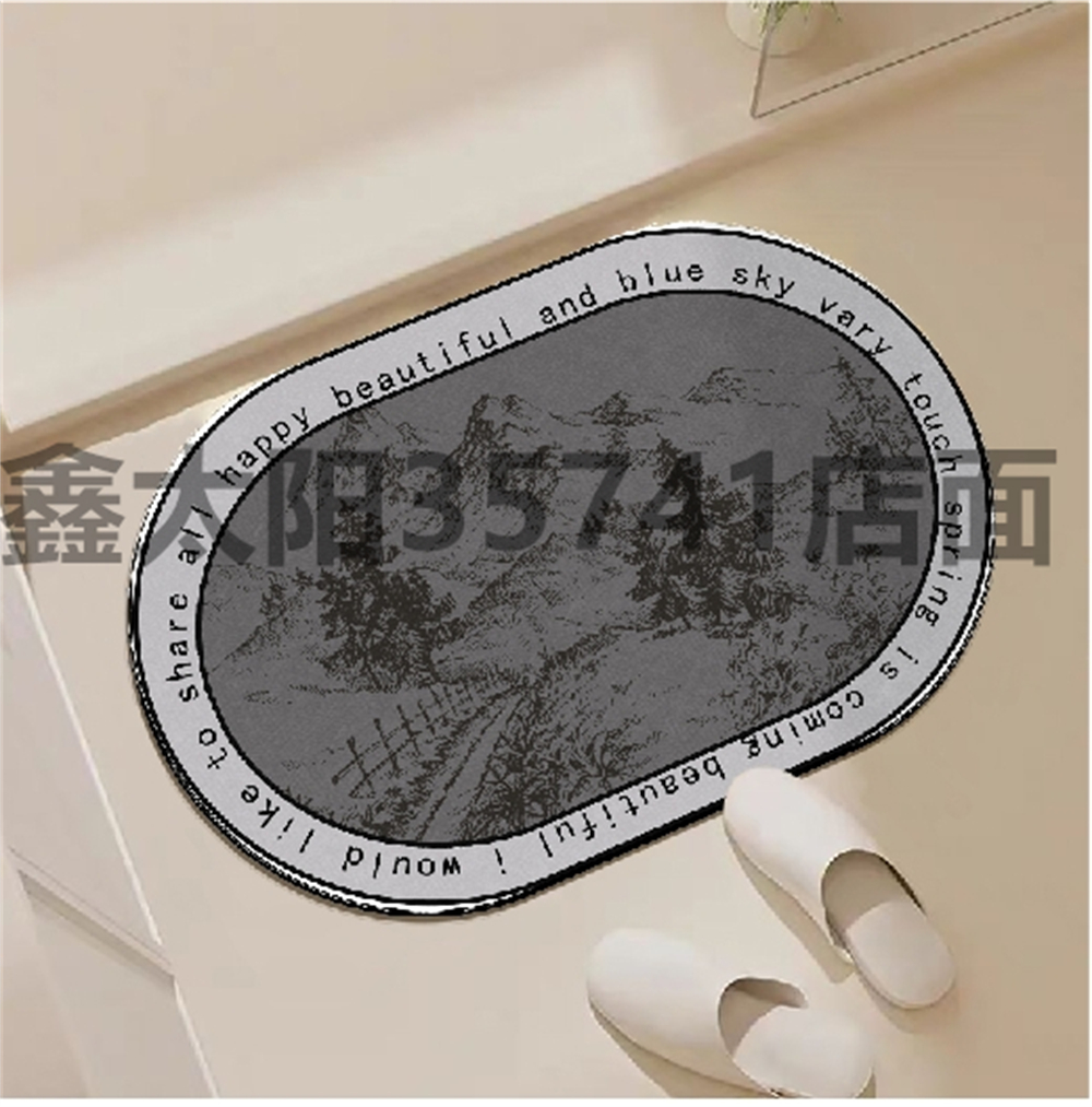 [xinsun] oval floor mat absorbent carpet bathroom bathroom door mat simple printing bathroom mat 中文版
