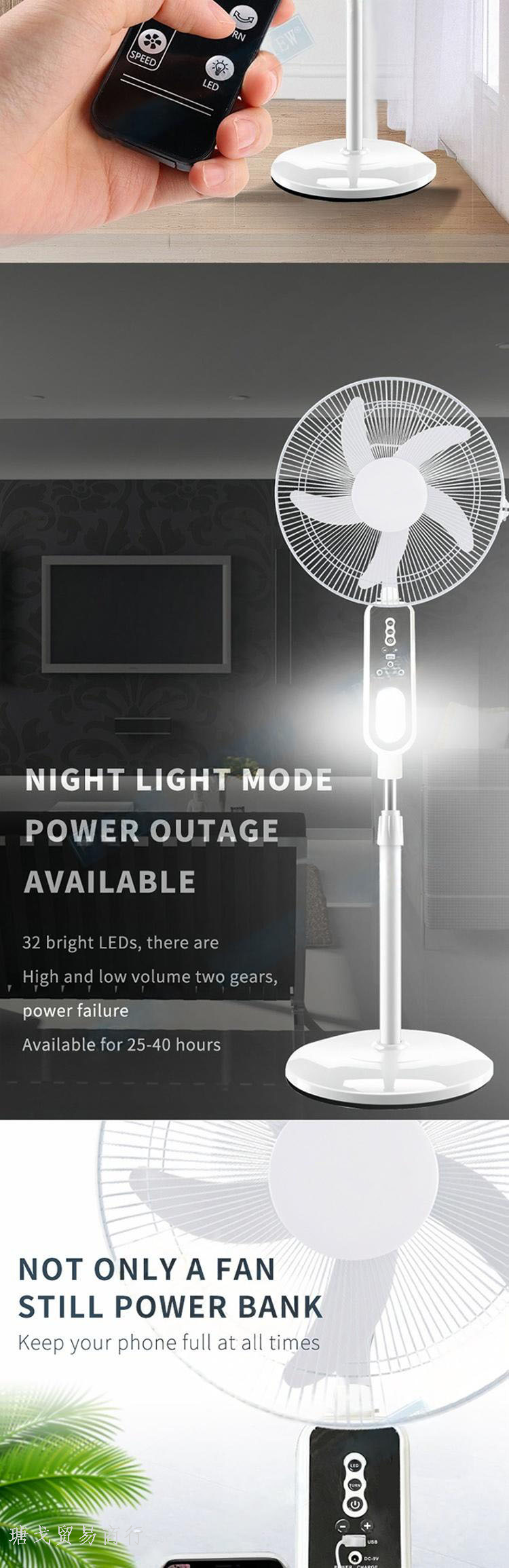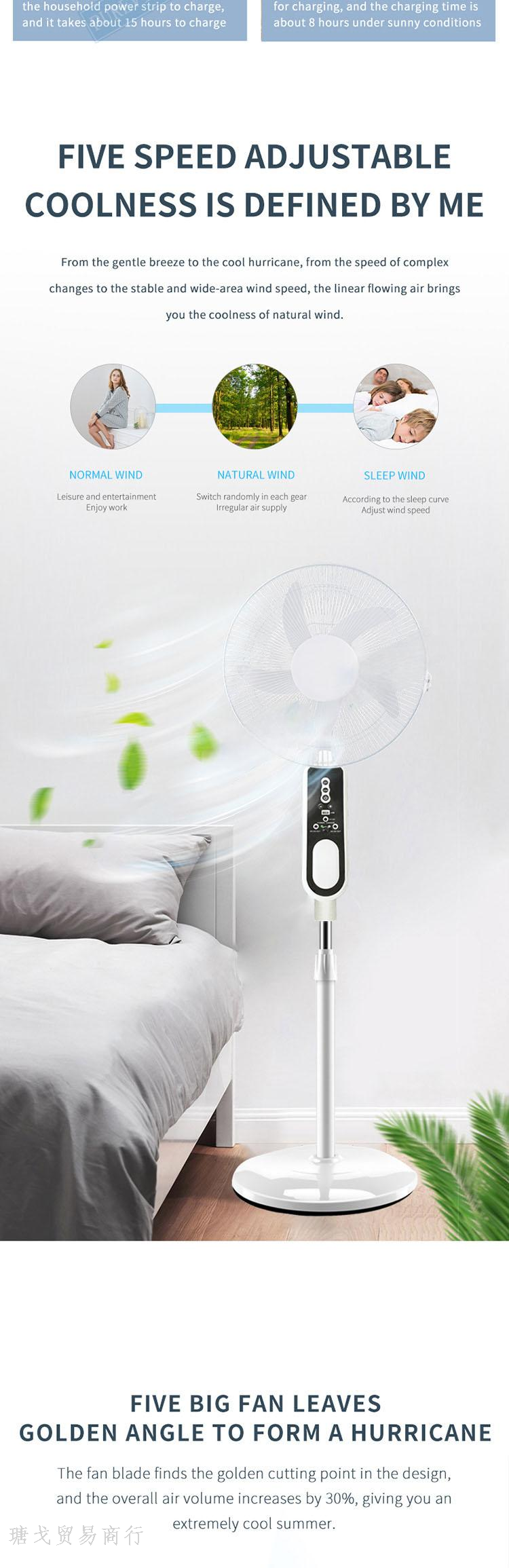 foreign trade special offer 16-inch solar remote control chargeable floor fan maintenance-free battery brushless motor fan 中文版