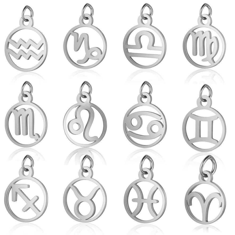 constellation pendant stainless steel diy accessories polished gold plating pendant round hollow constellation pendant 中文版