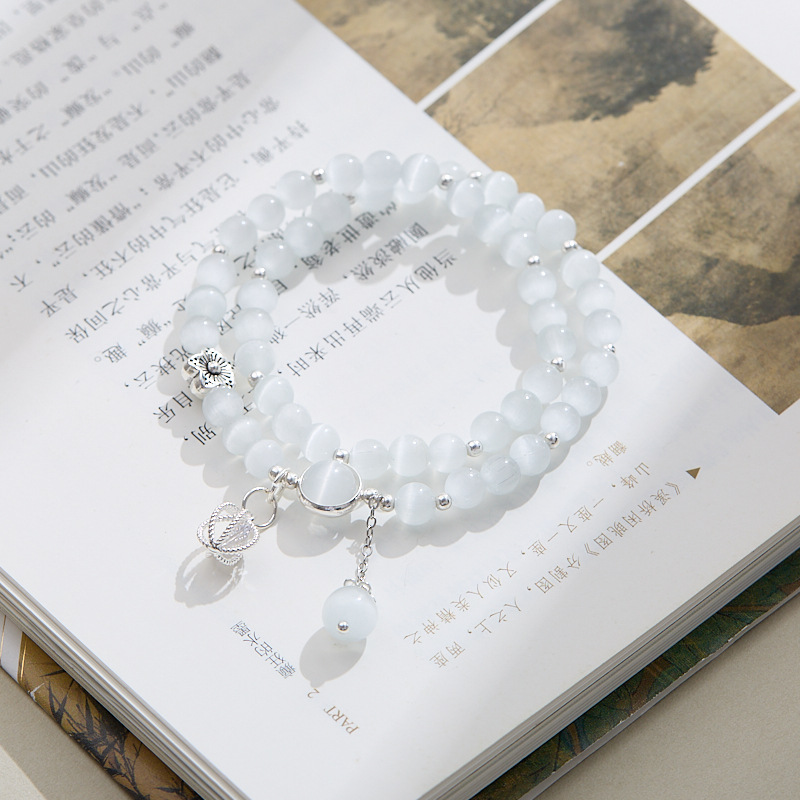 Cat's Eye Stone | 6MM Cat's Eye Stone - Double Loop Lariat Bracelet with Tassels