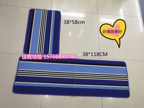 Colorful stripe kitchen mat set of 2, non-slip mat, kitchen mat, foot mat, kitchen combination mat, water-absorbing non-slip mat. The bottom is TPR non-slip mat, the fabric is flat ring polyester, and the regular colors are 4, mixed colors, and clear colors are available. The simple style pattern, the size is 38*58/38*118cm, one piece is 30 sets.