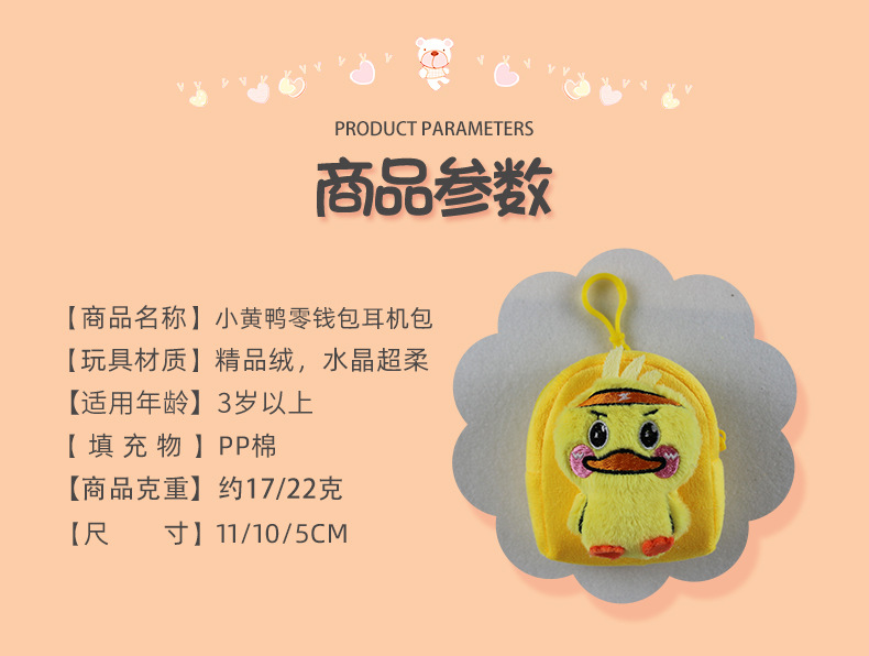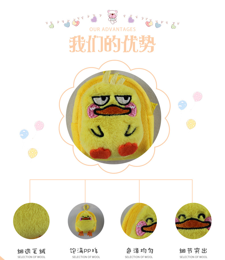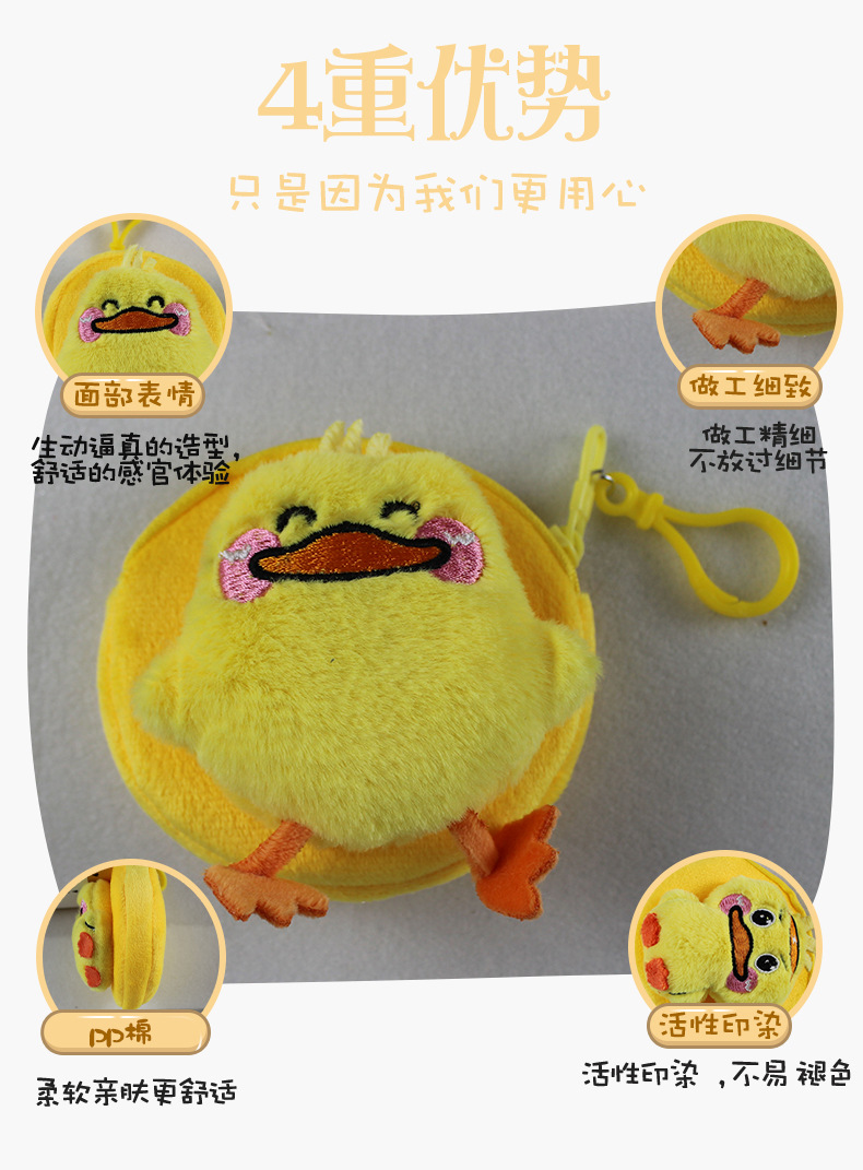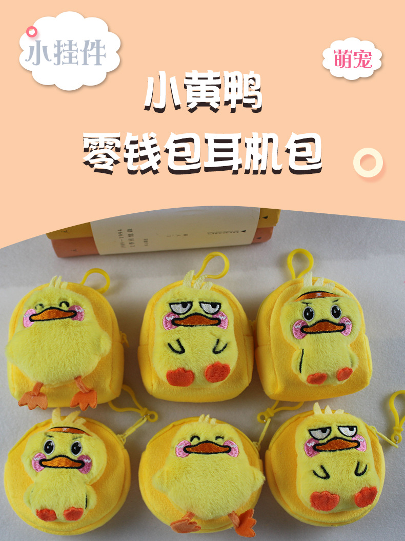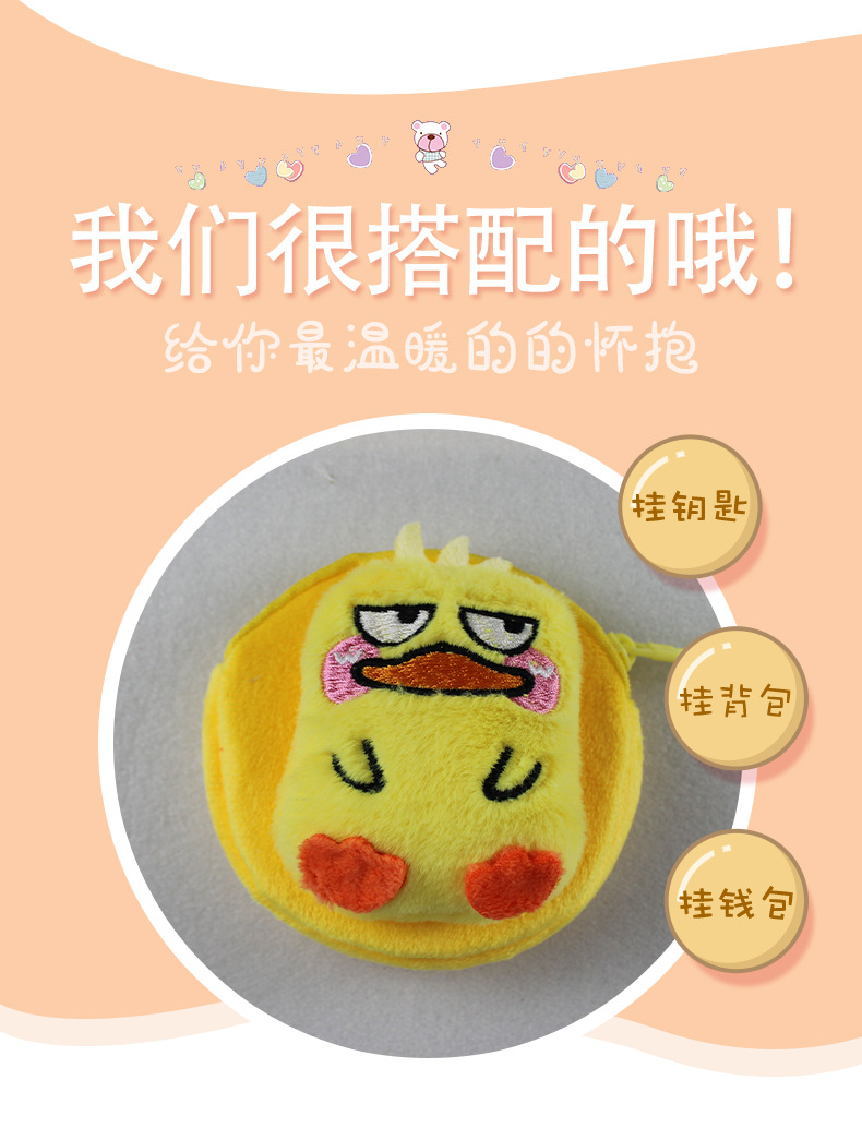 Export trade simple creative plush cartoon yellow duck plush wallet round key bag coin purse cartoon hanging ornament