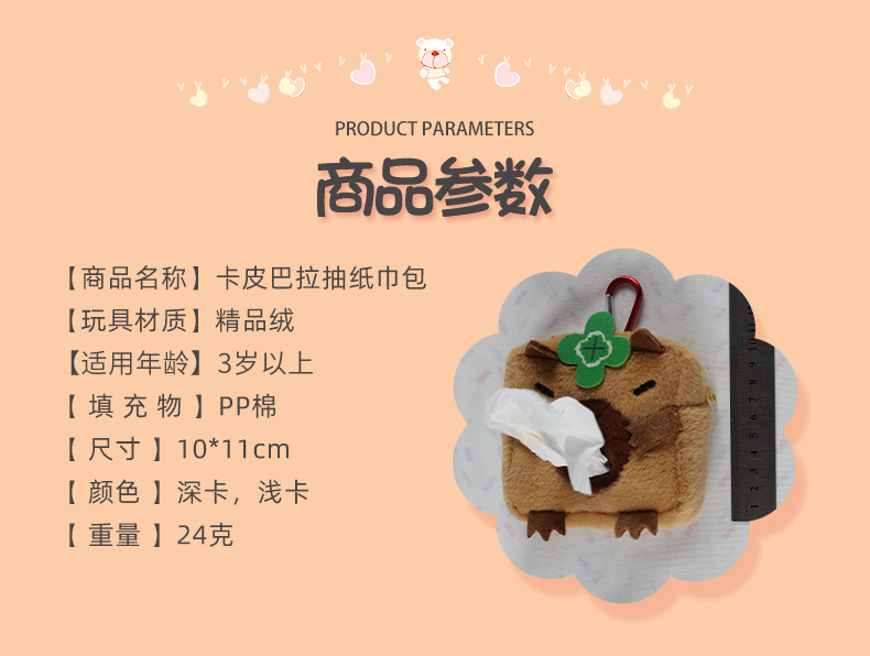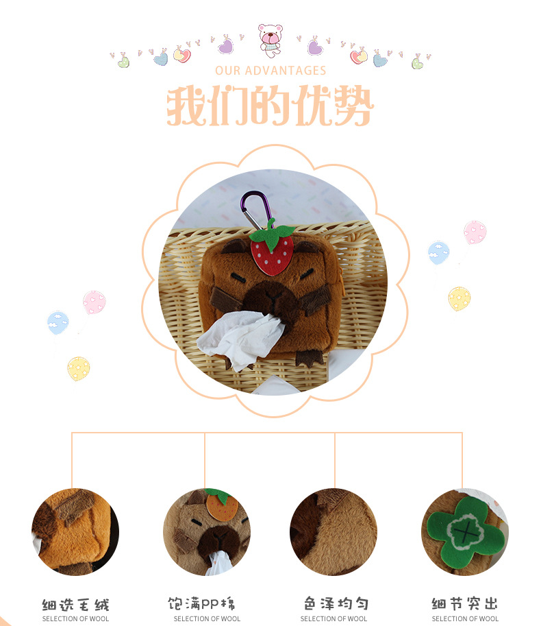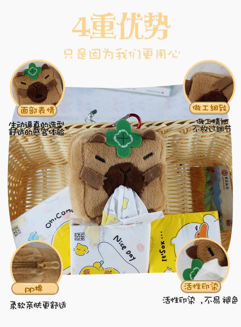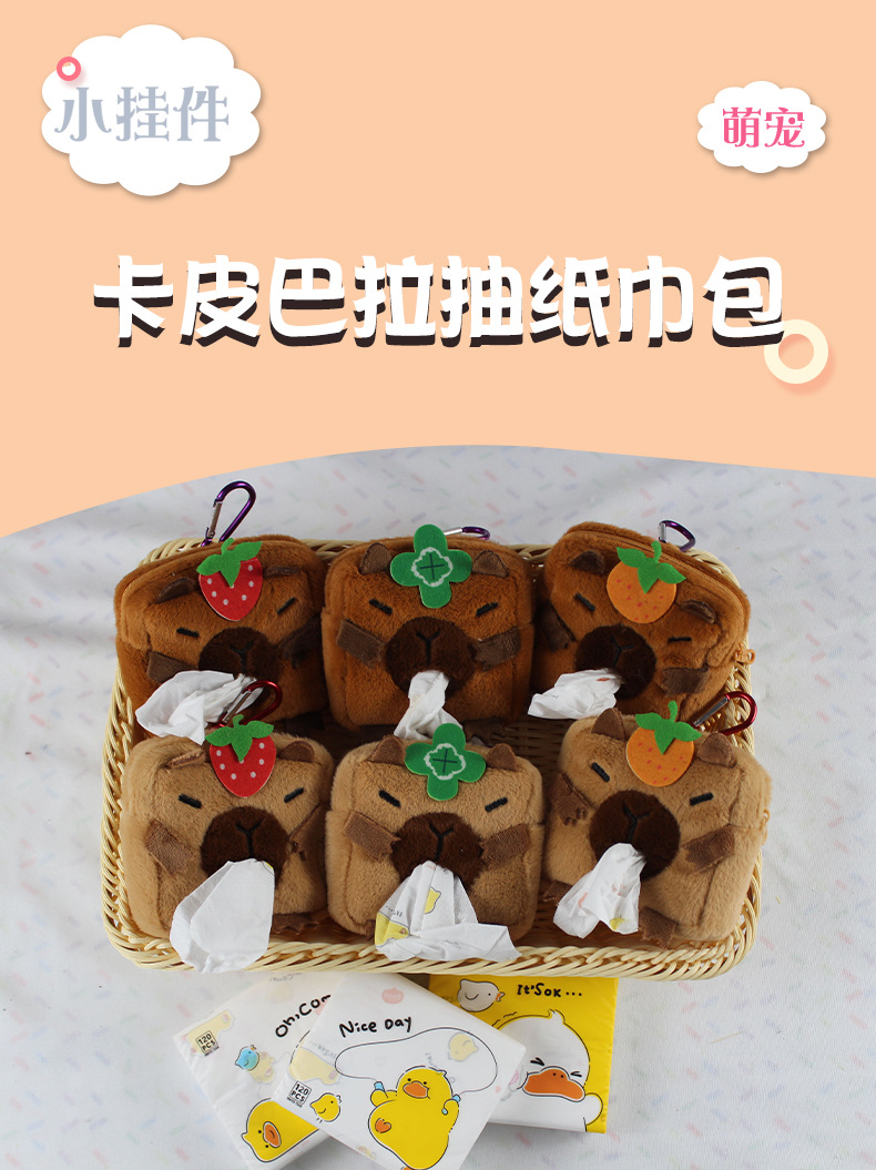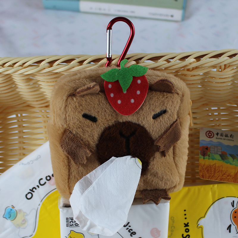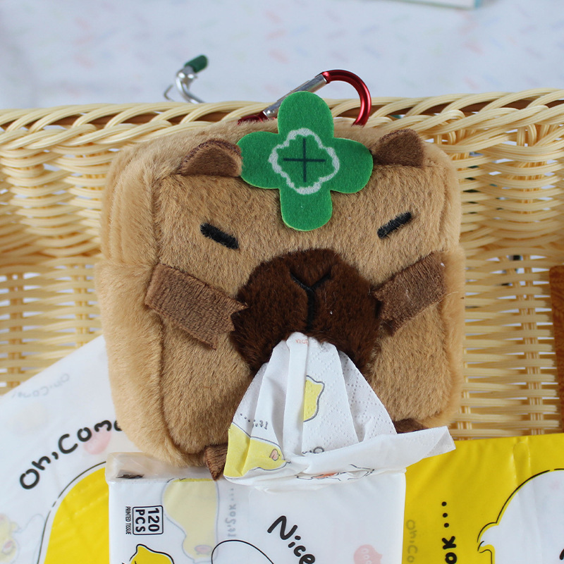 Capipara creative plush car tissue box cute tissue box multi-function tissue box bag accessory foreign trade