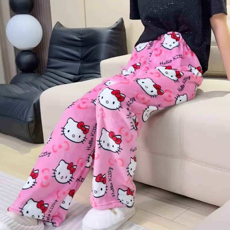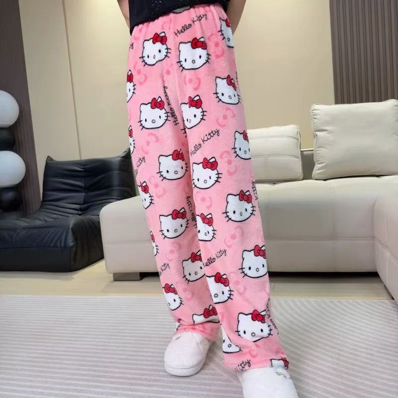 cartoon flannel pajama pants for women autumn and winter new coral fleece thickened fleece-lined warm leisure home pants 中文版