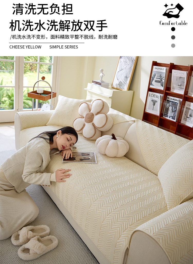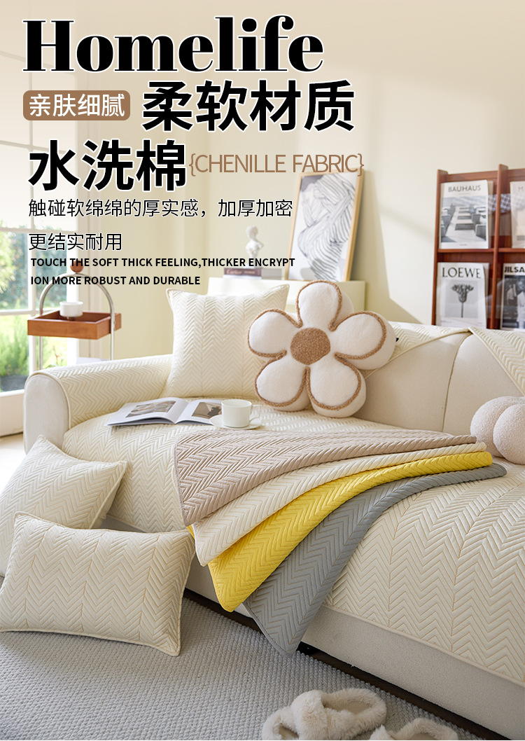 washed cotton sofa cushion four seasons universal 2025 new non-slip cream wind quilted sofa cover 中文版