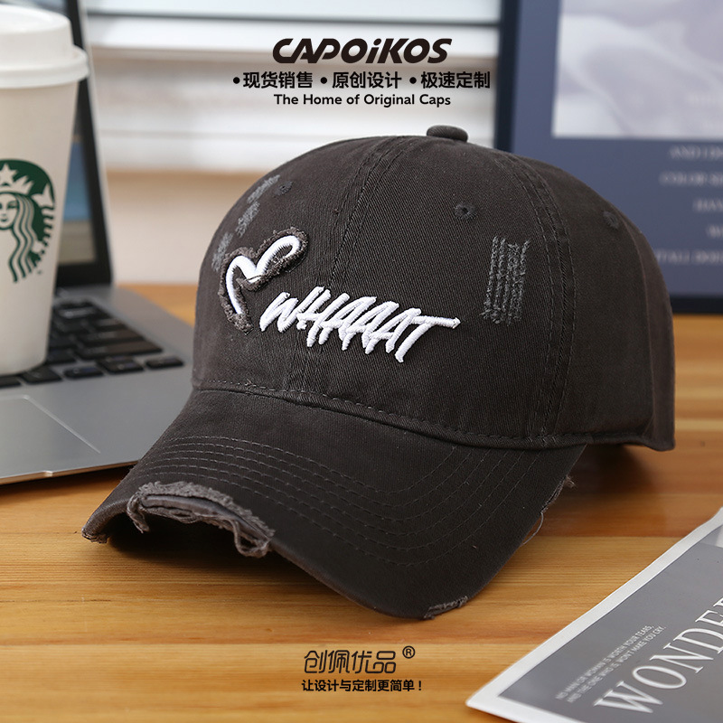 foreign trade korean style three-dimensional embroidery washed men and women spring and summer soft peaked cap outdoor sun-shade all-match baseball cap