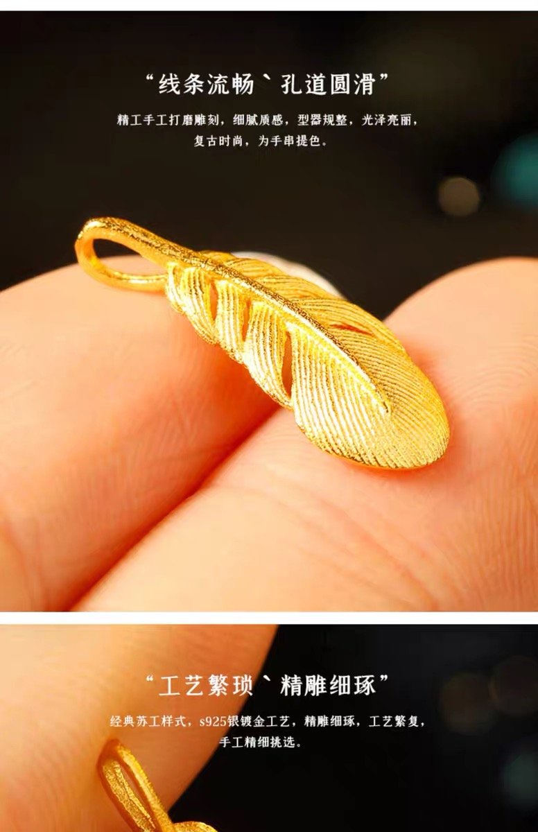 old gold s925 silver plated feather small lift pendant king kong xingyue bodhi 108 bracelet diy accessories 中文版