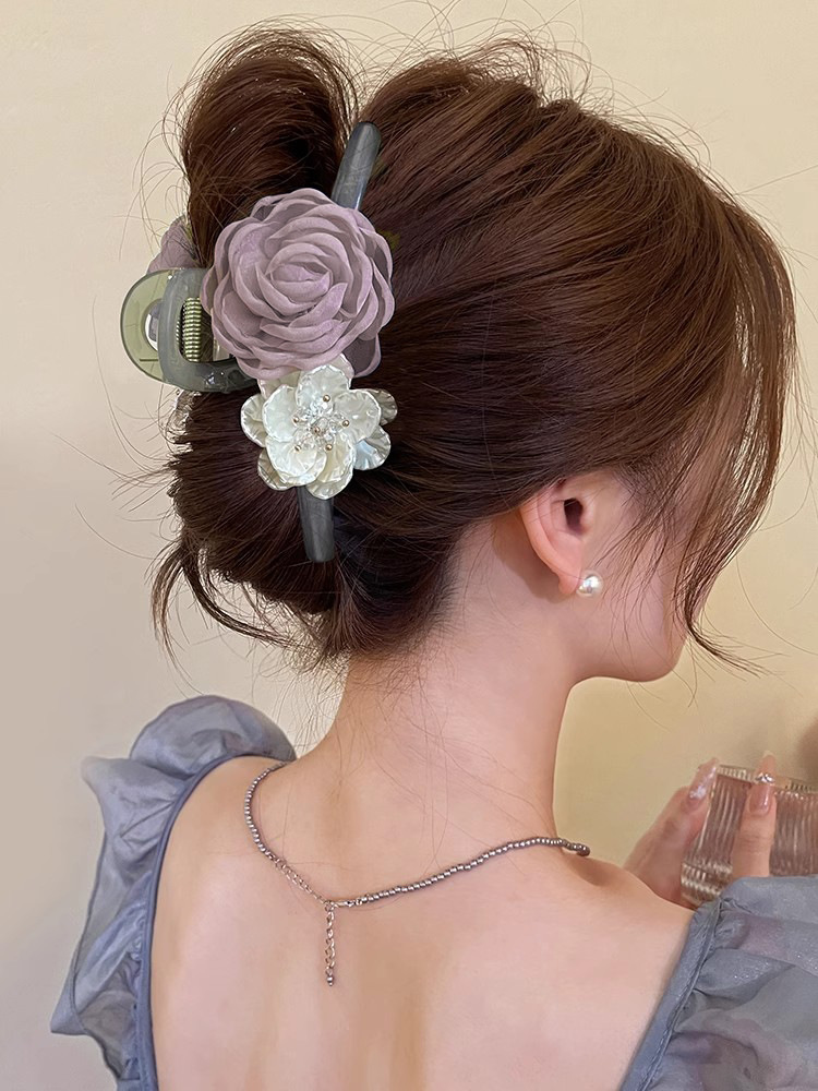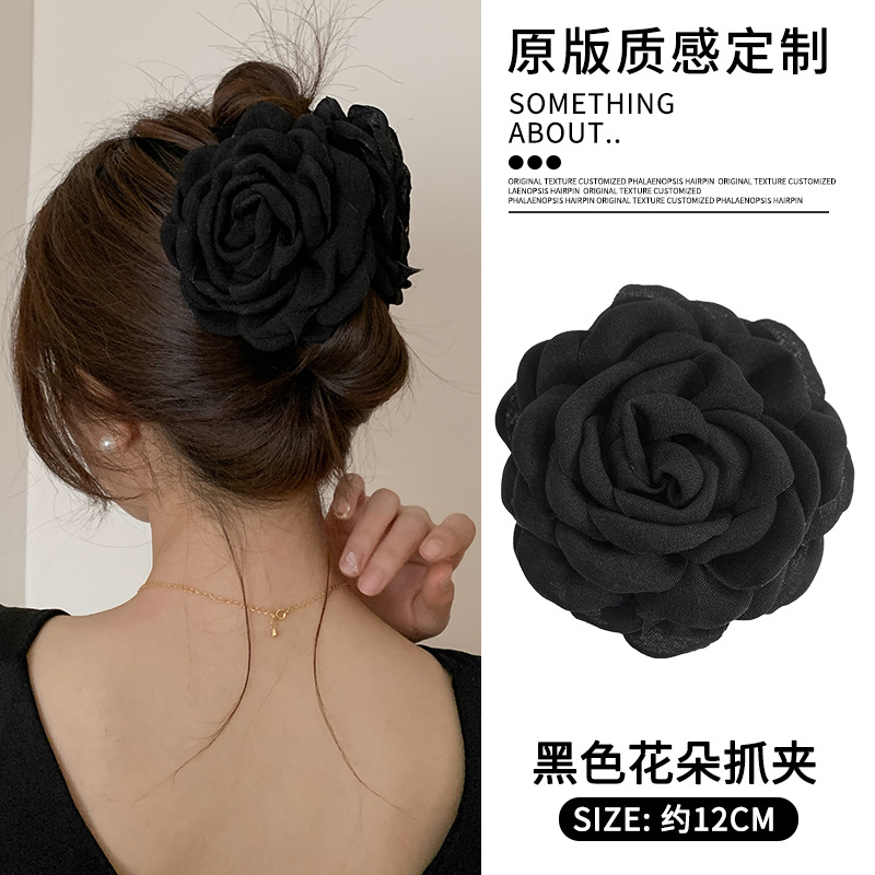 black flower hair clip [12cm]]