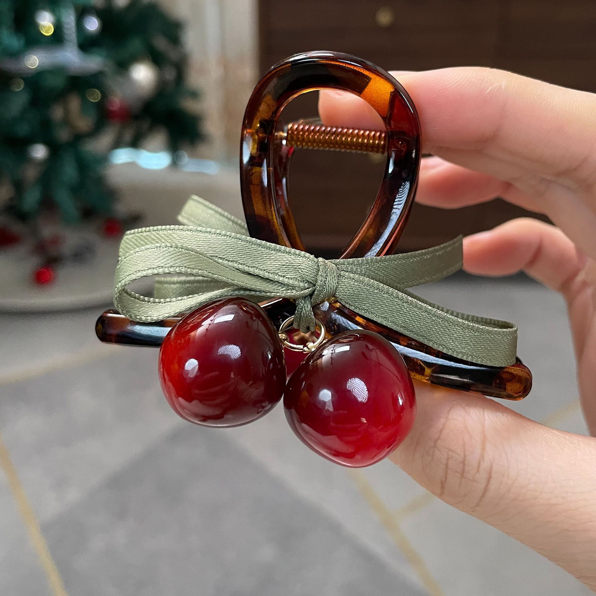 brown cherry bow claw clip-8cm