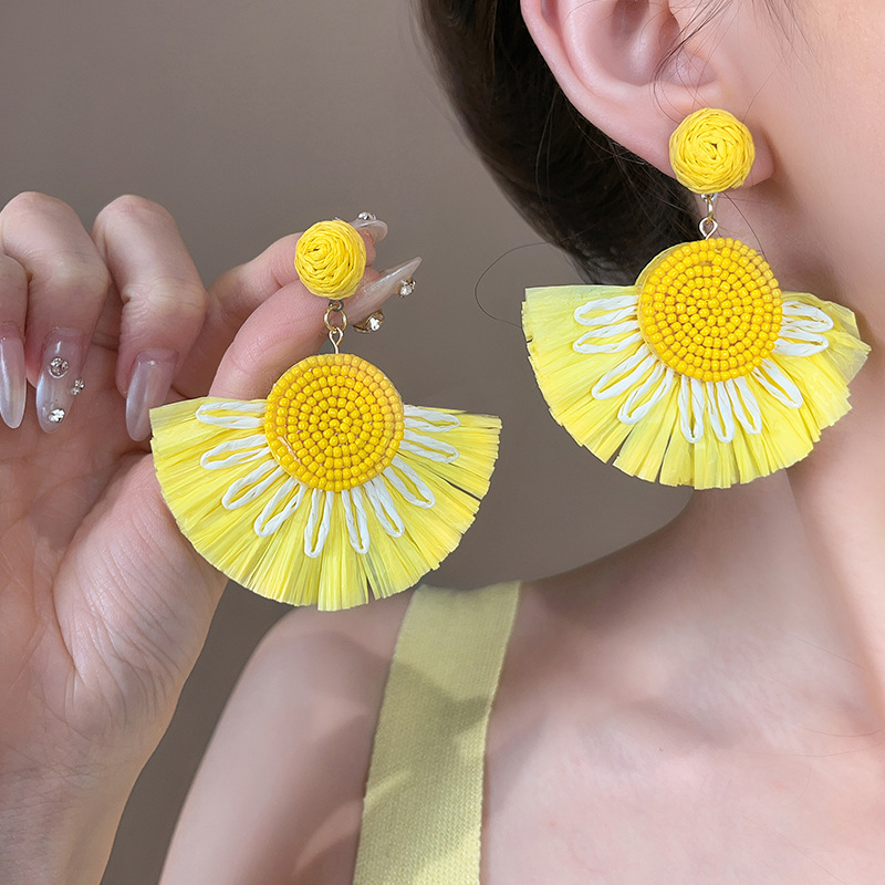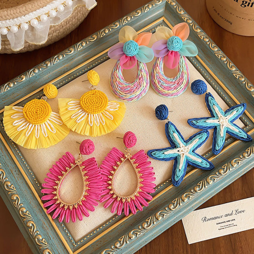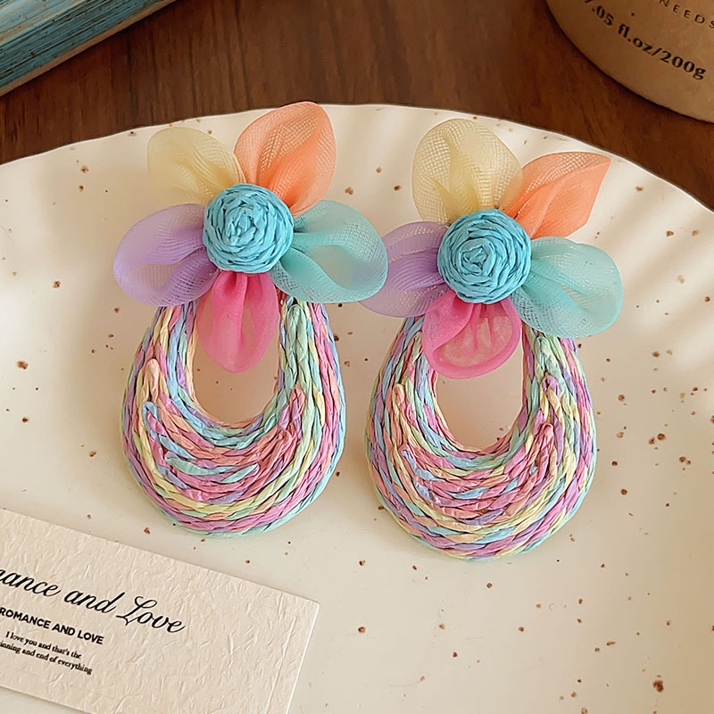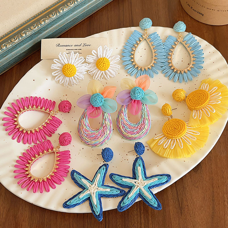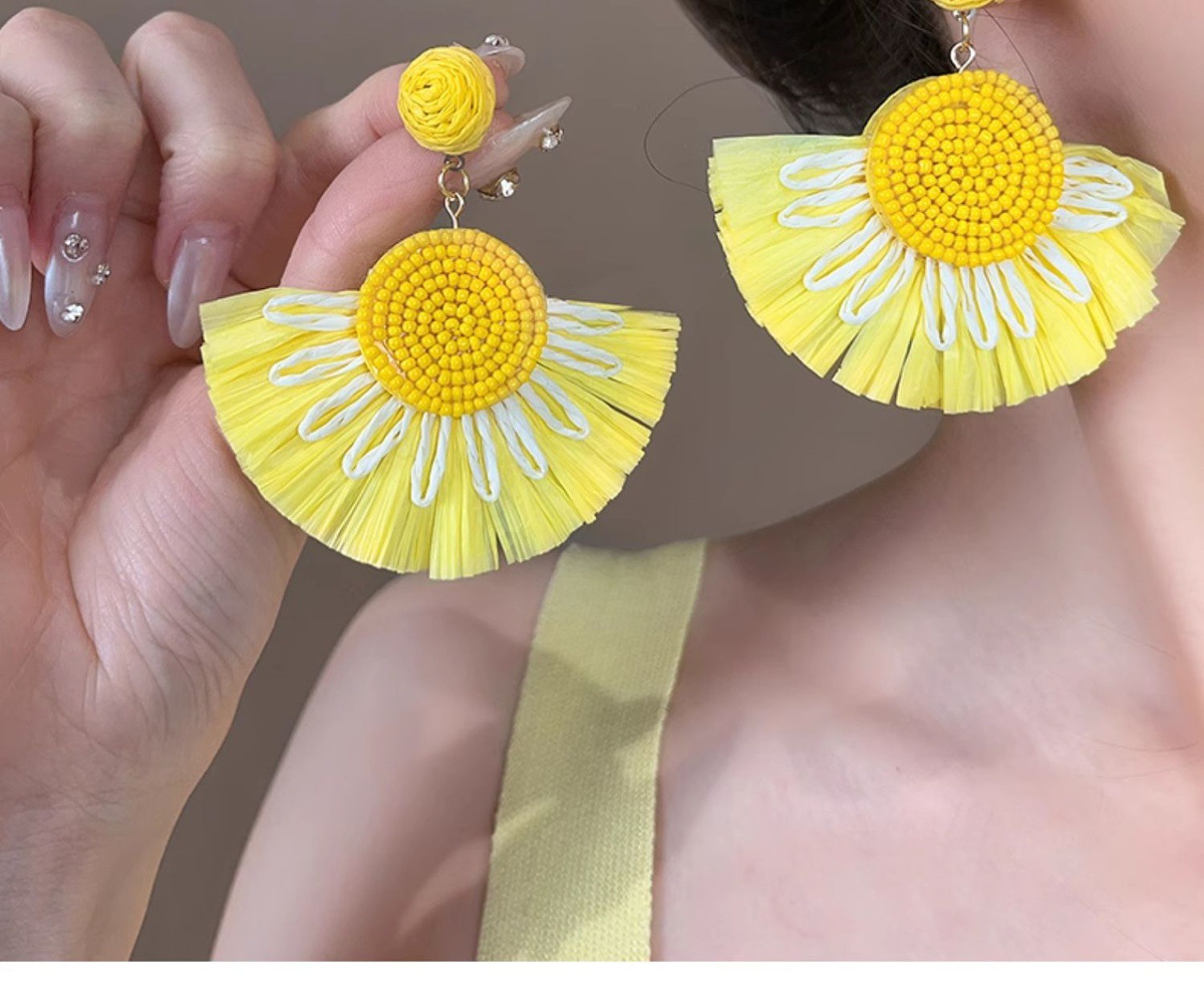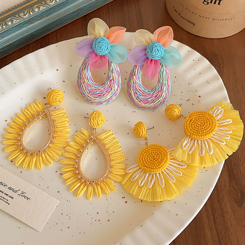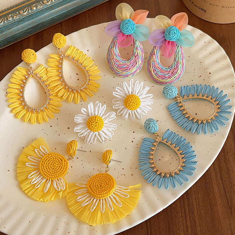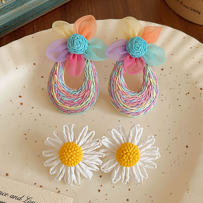 colorful straw flower earrings, environmentally friendly
