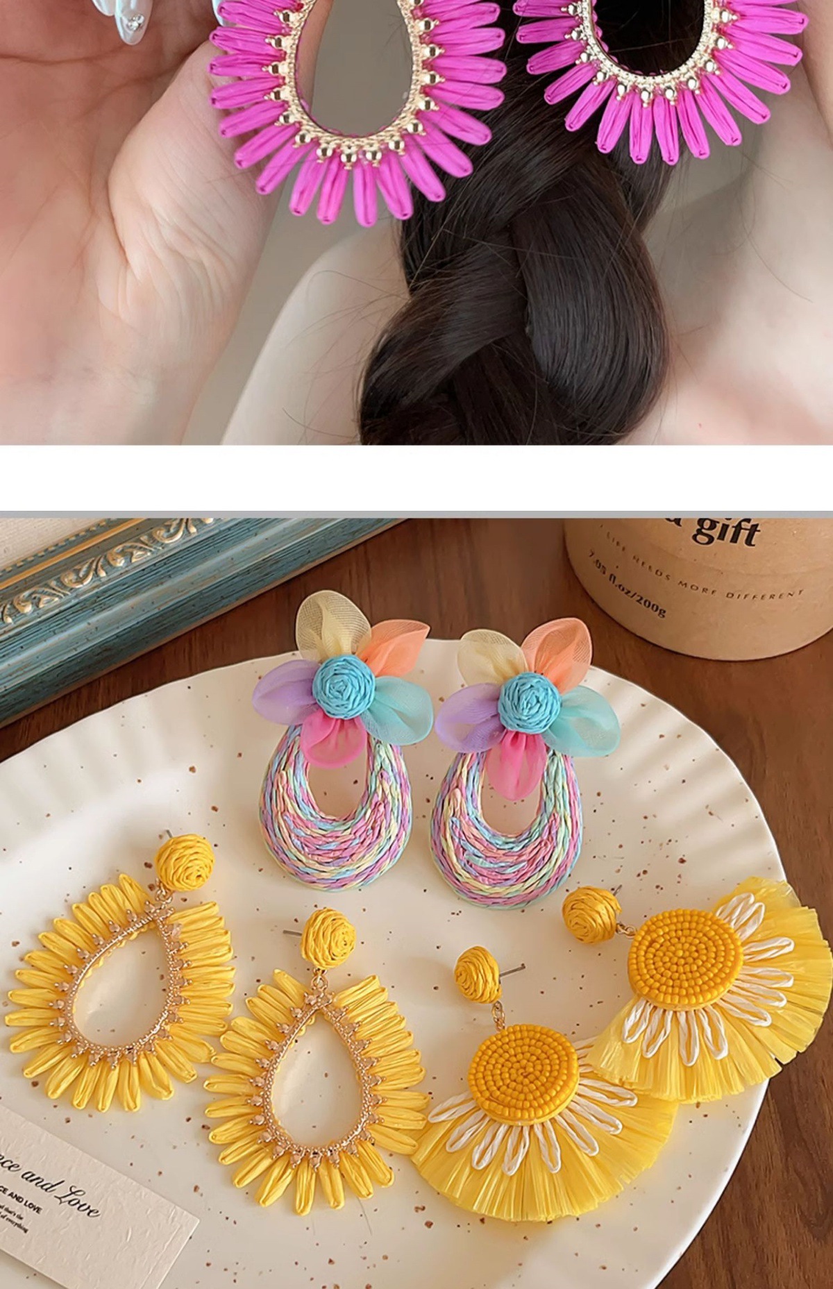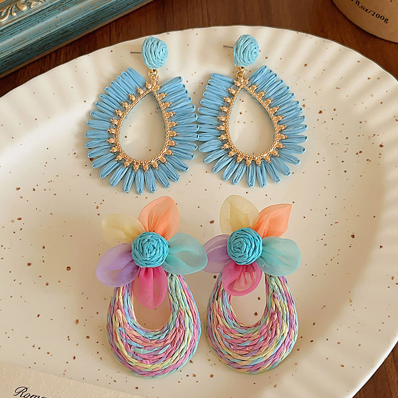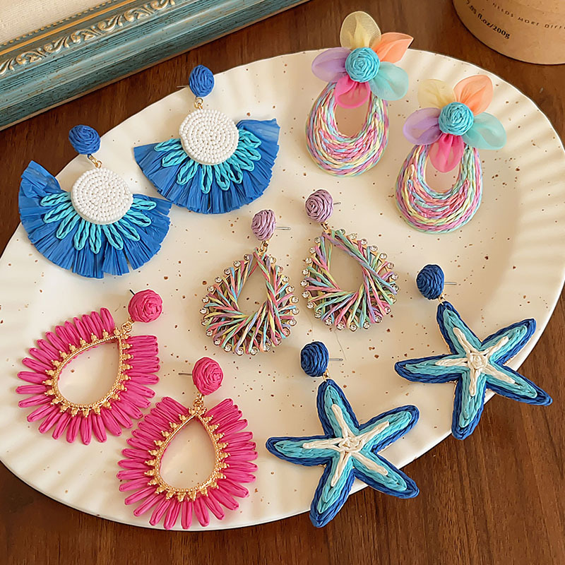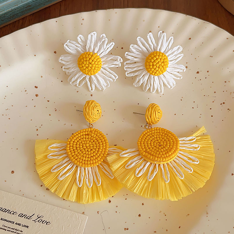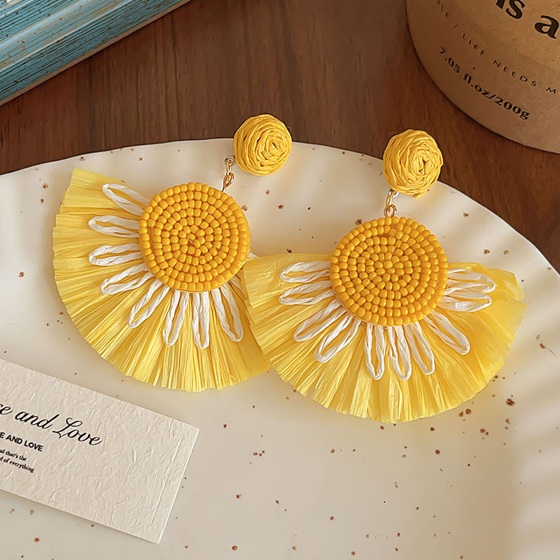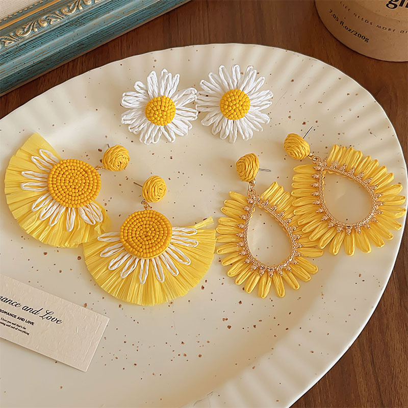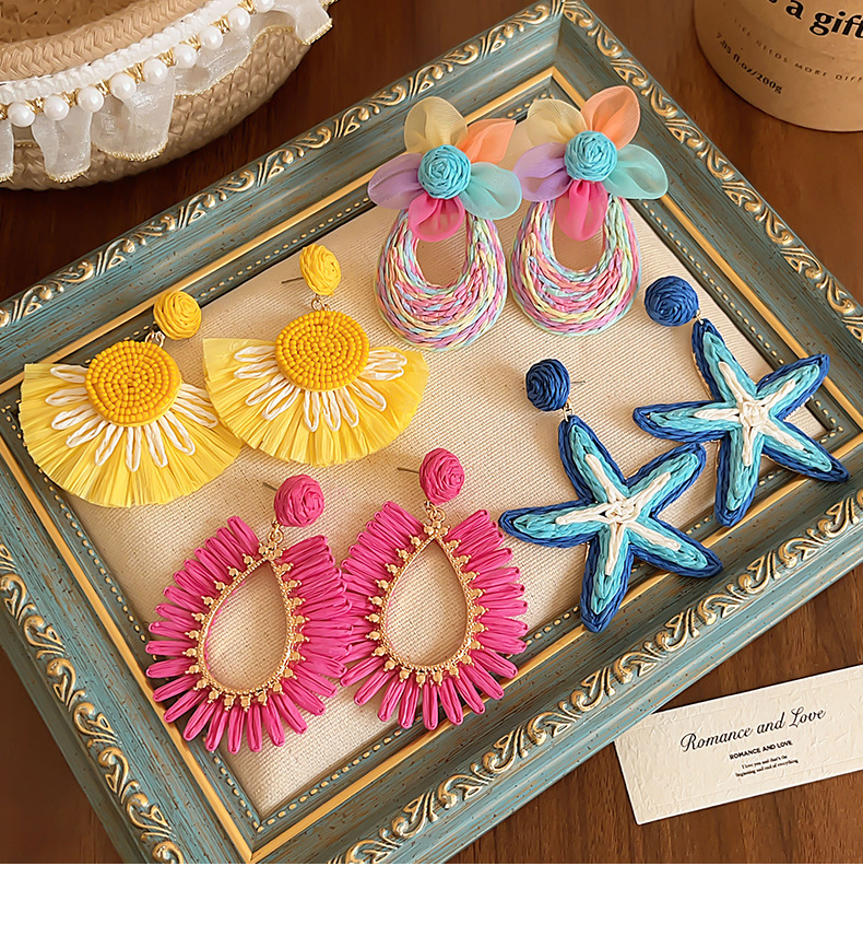 colorful straw flower earrings, environmentally friendly