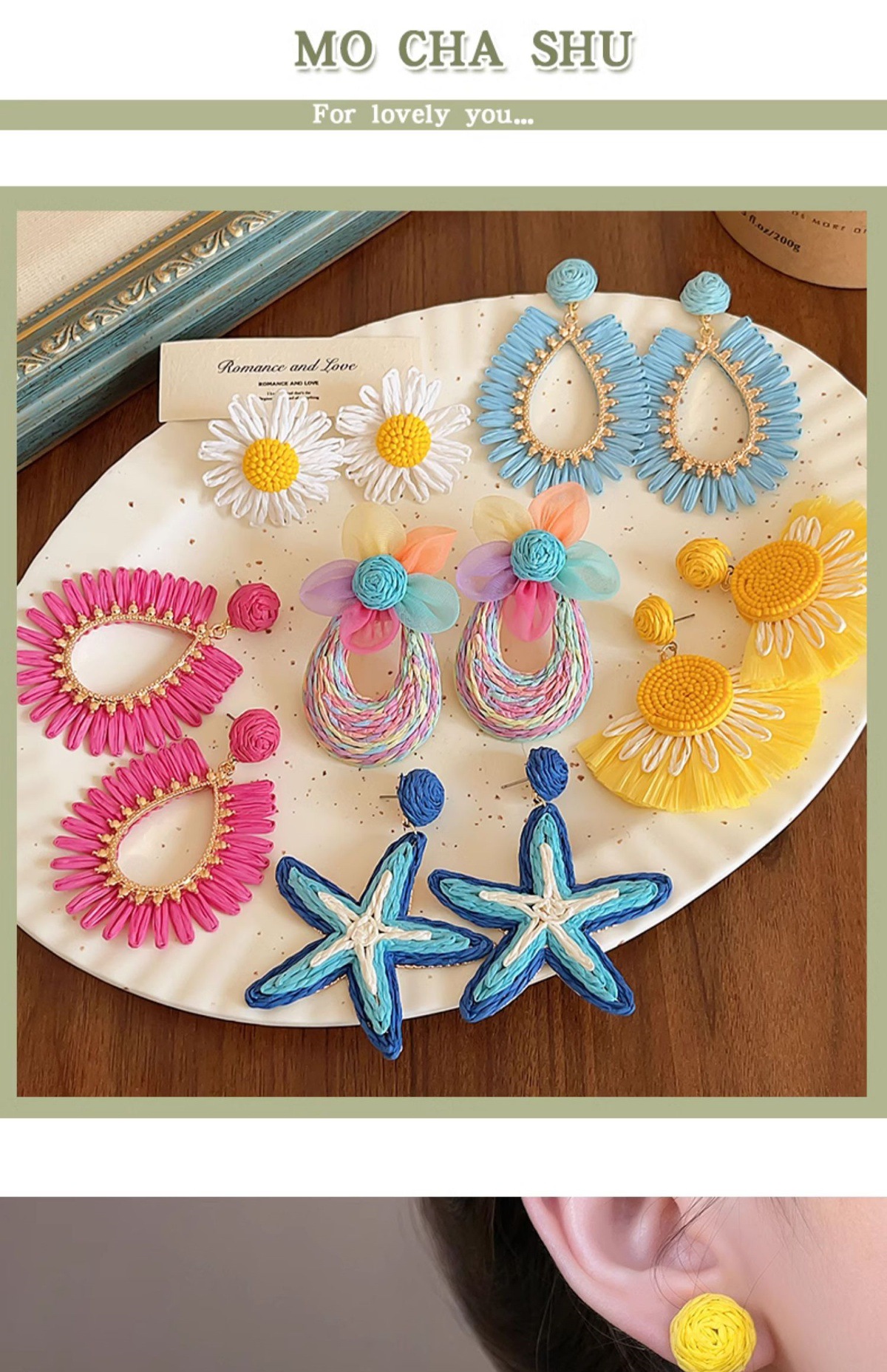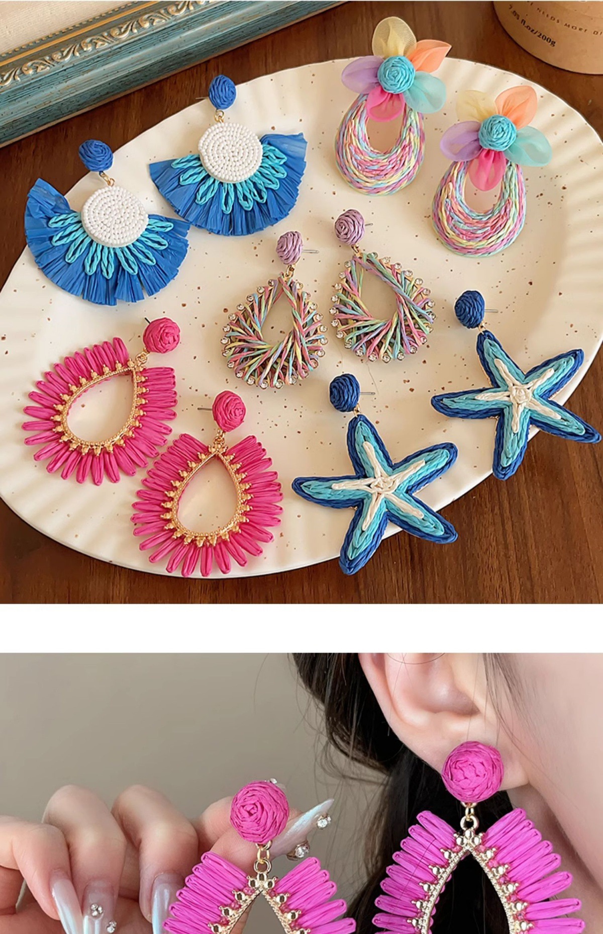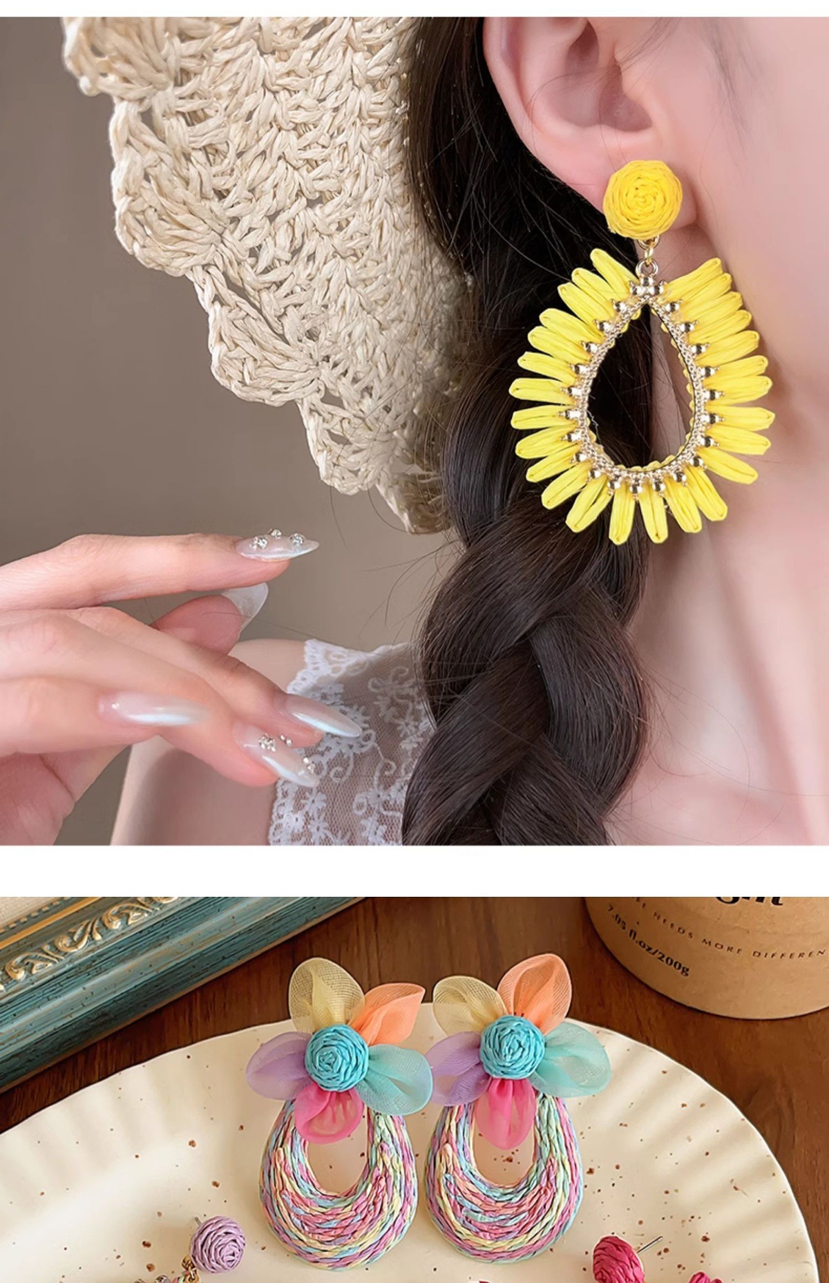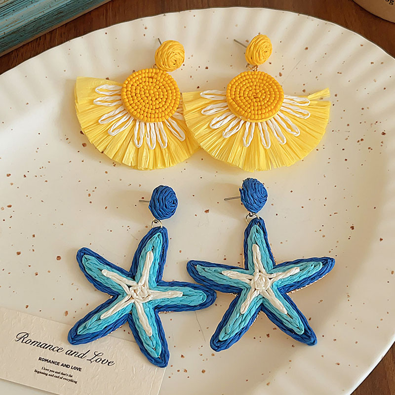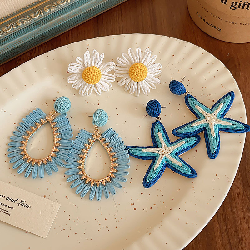 colorful straw flower earrings, environmentally friendly