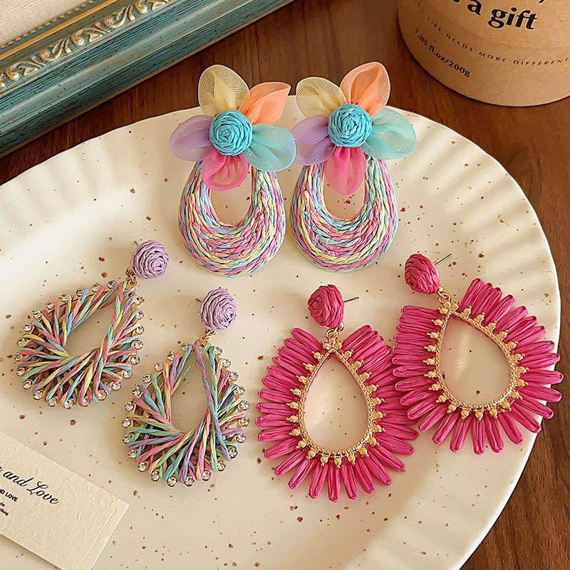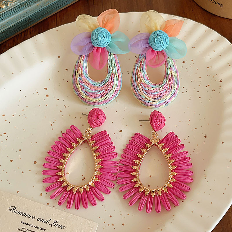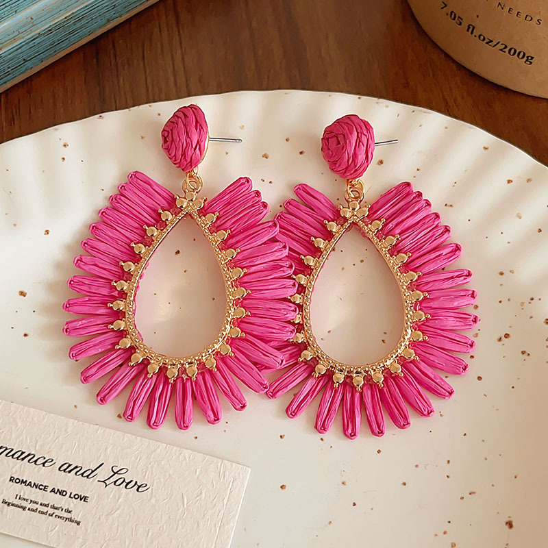 rose red hollow straw earrings, environmentally friendly