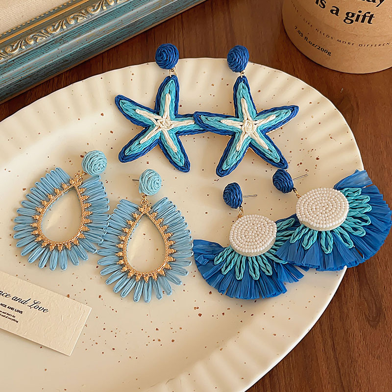 blue hollow straw earrings, environmentally friendly
