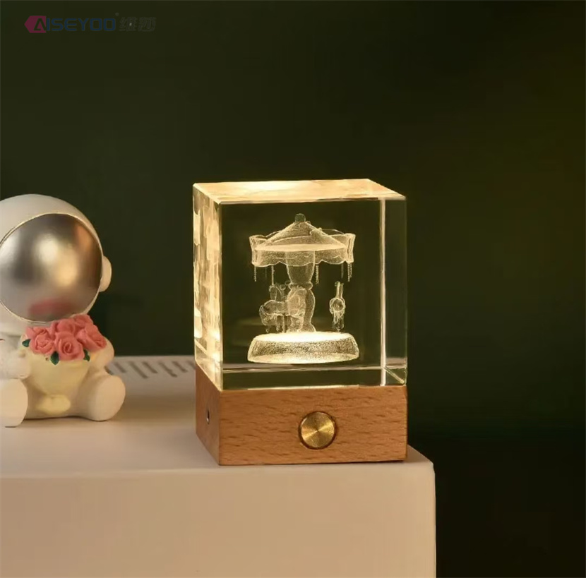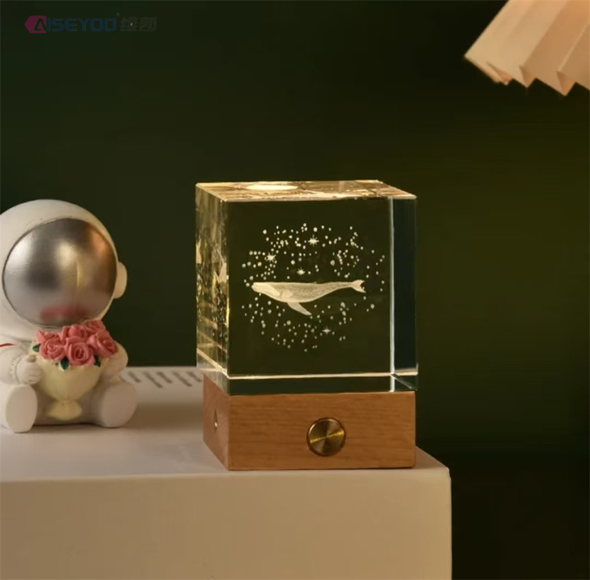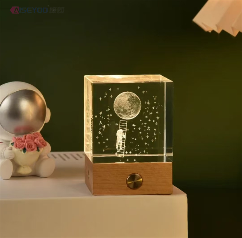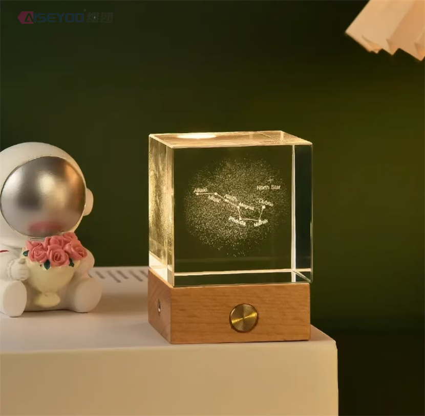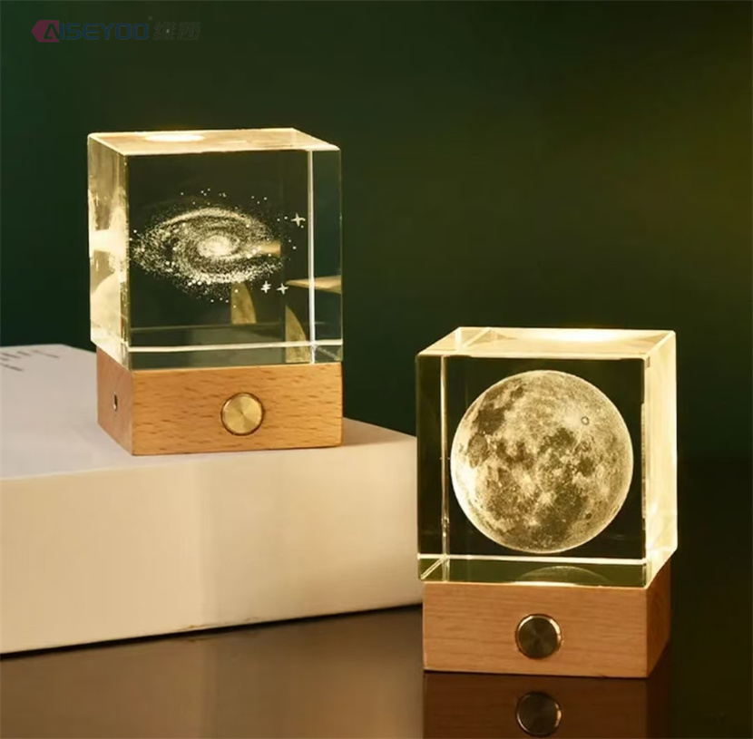 3d engraved galaxy crystal lamp 4/5cm luminous solar system crystal glass ball ornaments wooden base crystal cube light 中文版