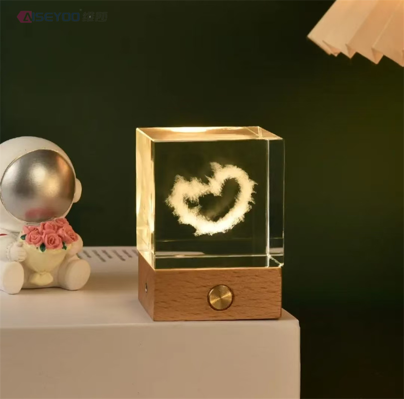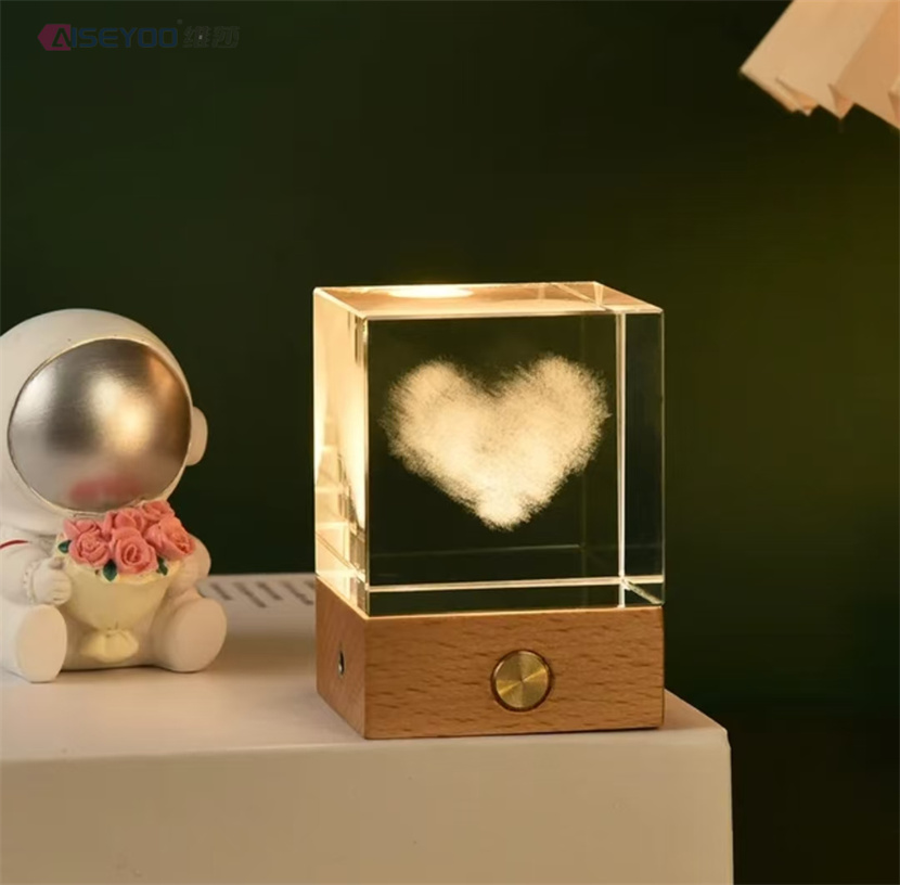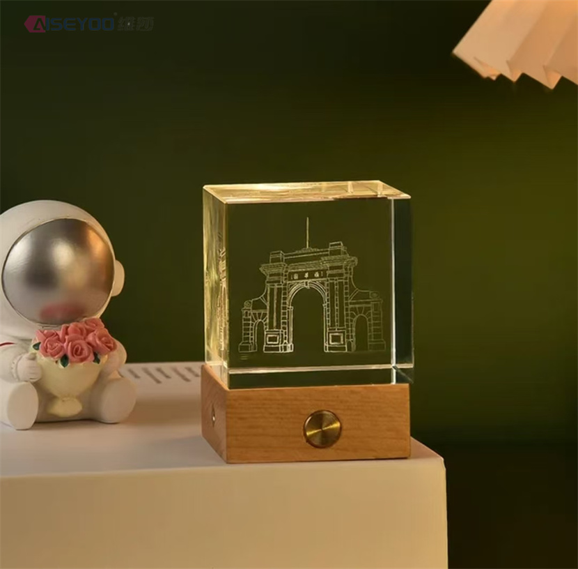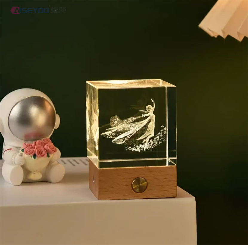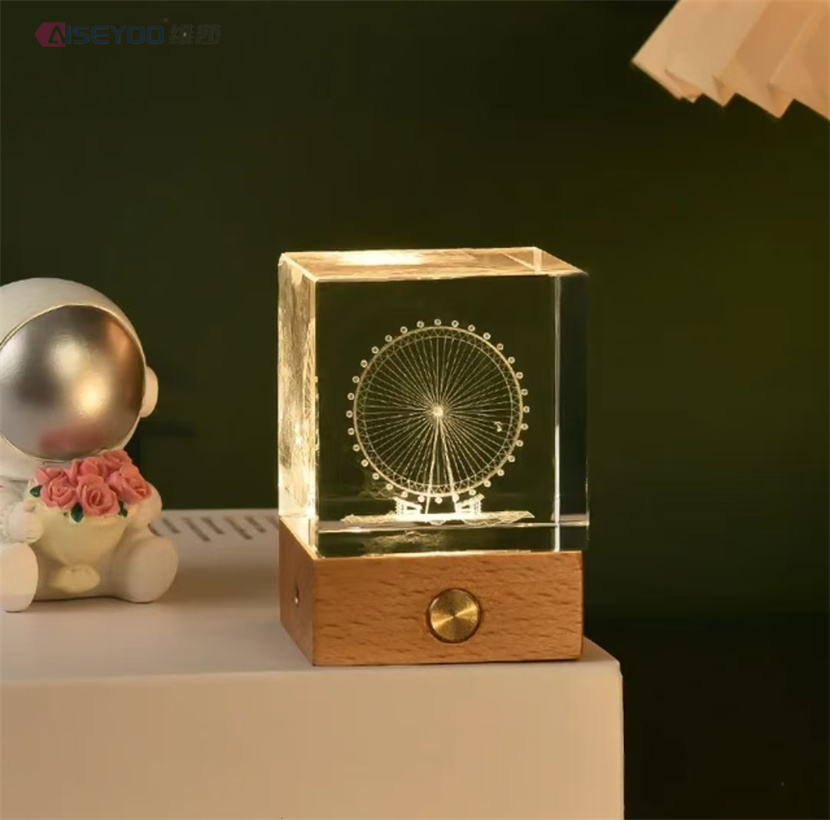 3d engraved galaxy crystal lamp 4/5cm luminous solar system crystal glass ball ornaments wooden base crystal cube light 中文版